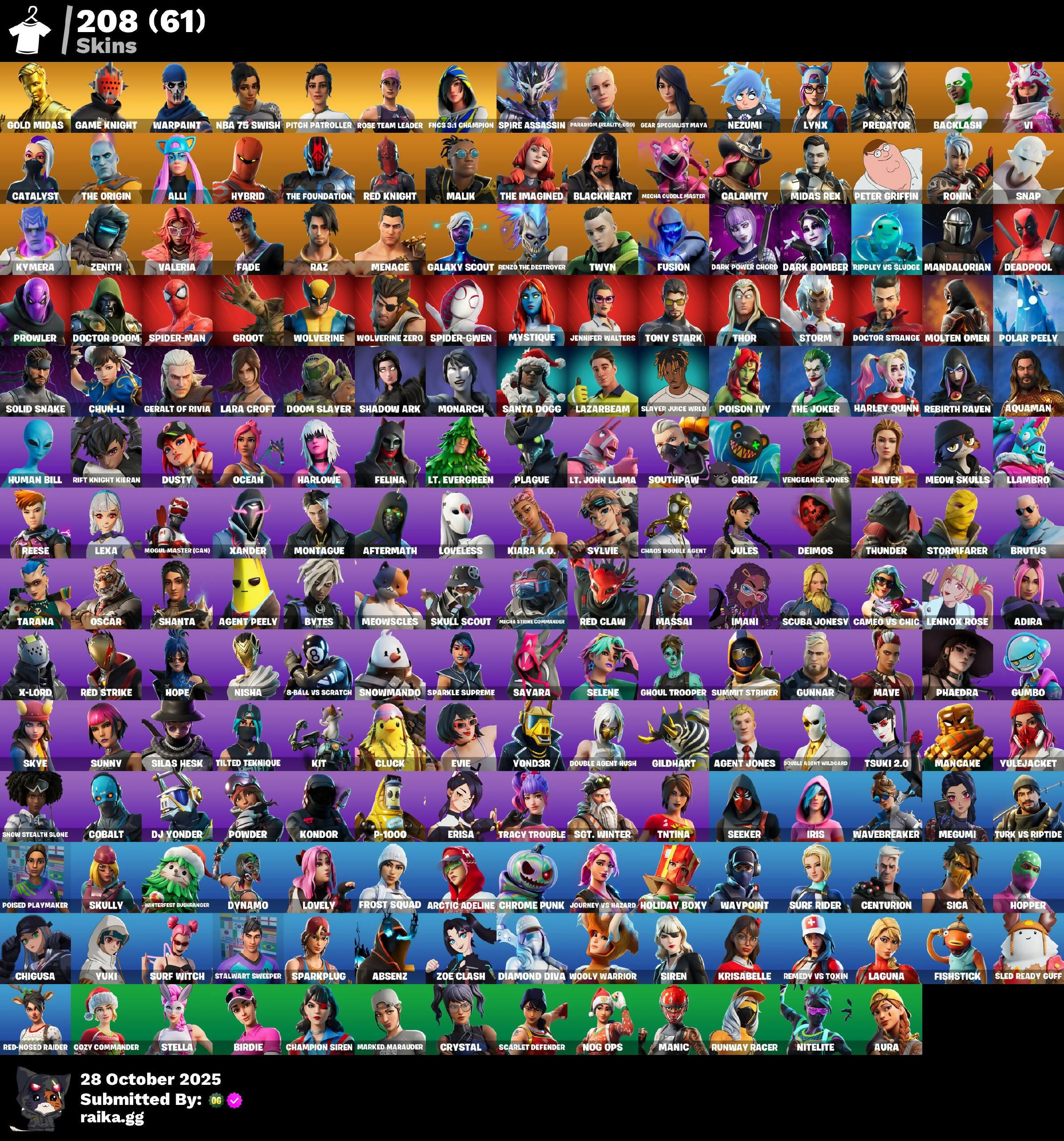 [PC/PSN/XBOX/NITTENDO] 208 skins | OG STW | Leviathan Axe | Gold Midas | Game Knight | NBA 75 Swish | Pitch Patroller | FNCS 3:1 Champion | Spire Assassin | Paradigm (Reality-659) | 450 VB