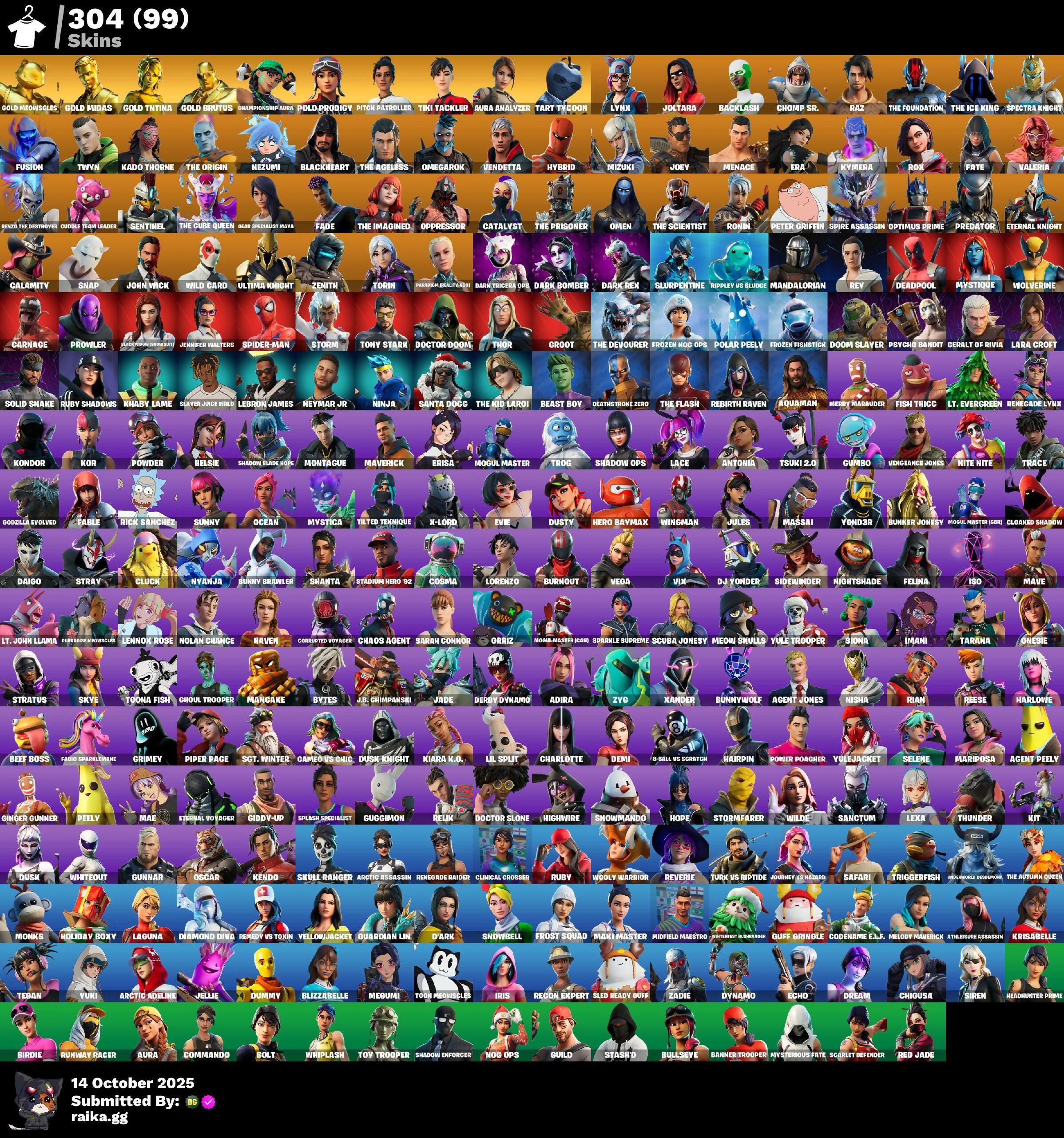[PC/PSN/XBOX/NITTENDO] 304 skins | Polo Prodigy | Renegade Raider | Leviathan Axe | Gold Meowscles | Gold Midas | Gold TNTina | Gold Brutus | Championship Aura | Pitch Patroller | 650 VB