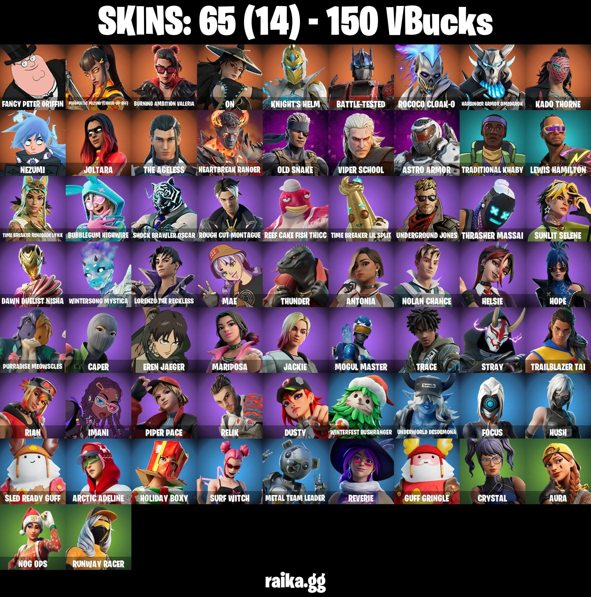 [PC/XB/PS/NIN] 65 skins | Fancy Peter Griffin | Renegade Lynx | Burning Ambition Valeria | Eren Jaeger| Knight's Helm | Stray | Caper | Metal Team Leader | Tech Axe | Ol'woody | Sigil Of The Alliance War