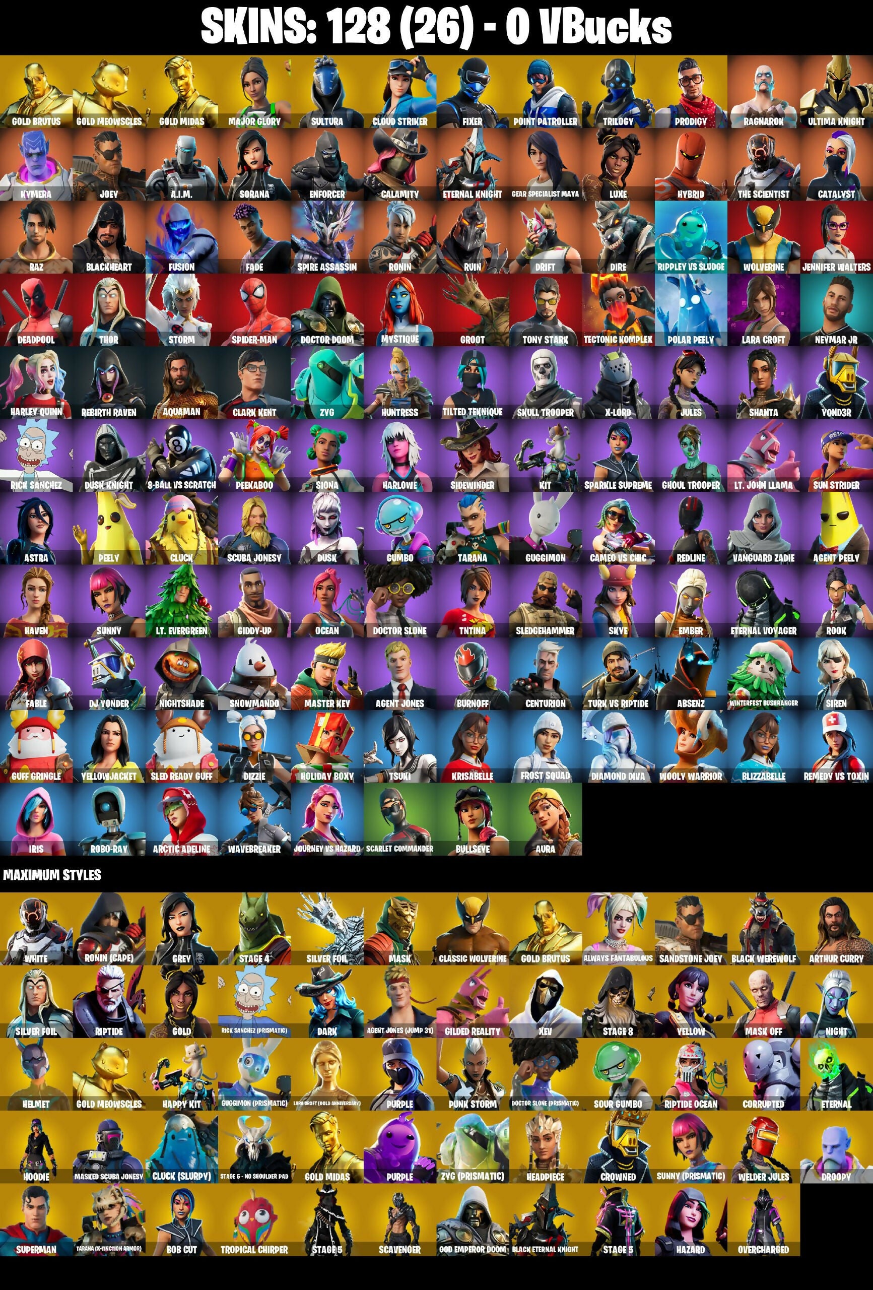 (PC/XBOX) 0 VB) 128 SKINS / Gold Brutus | Gold Meowscles | Gold Midas | Major Glory | Sultura | Cloud Striker | Fixer | Point Patroller /