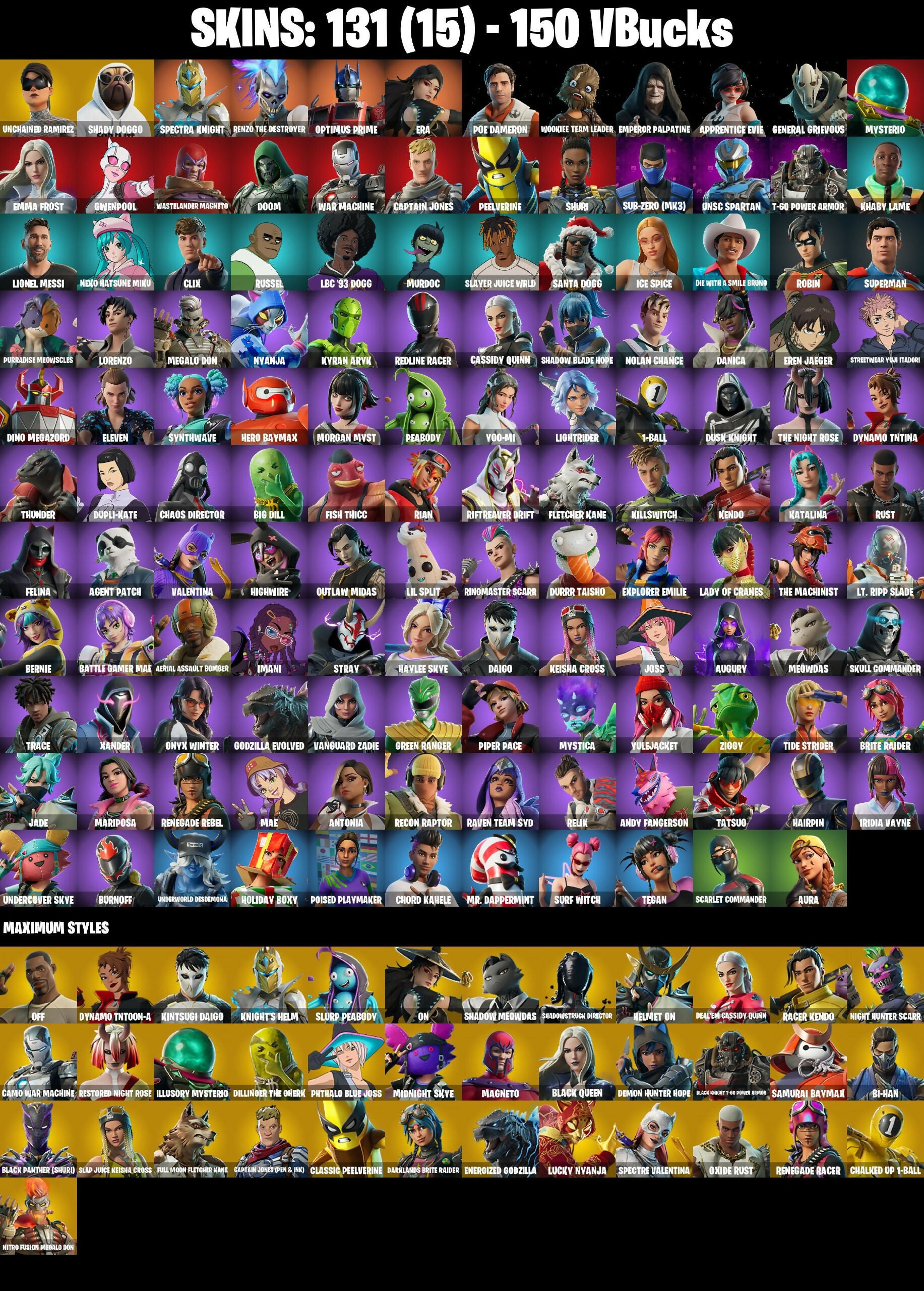 (PC/XBOX) 150 VB) 131 skins | Unchained Ramirez | Shady Doggo | Spectra Knight | Renzo the Destroyer | Optimus Prime | Era | Poe Dameron