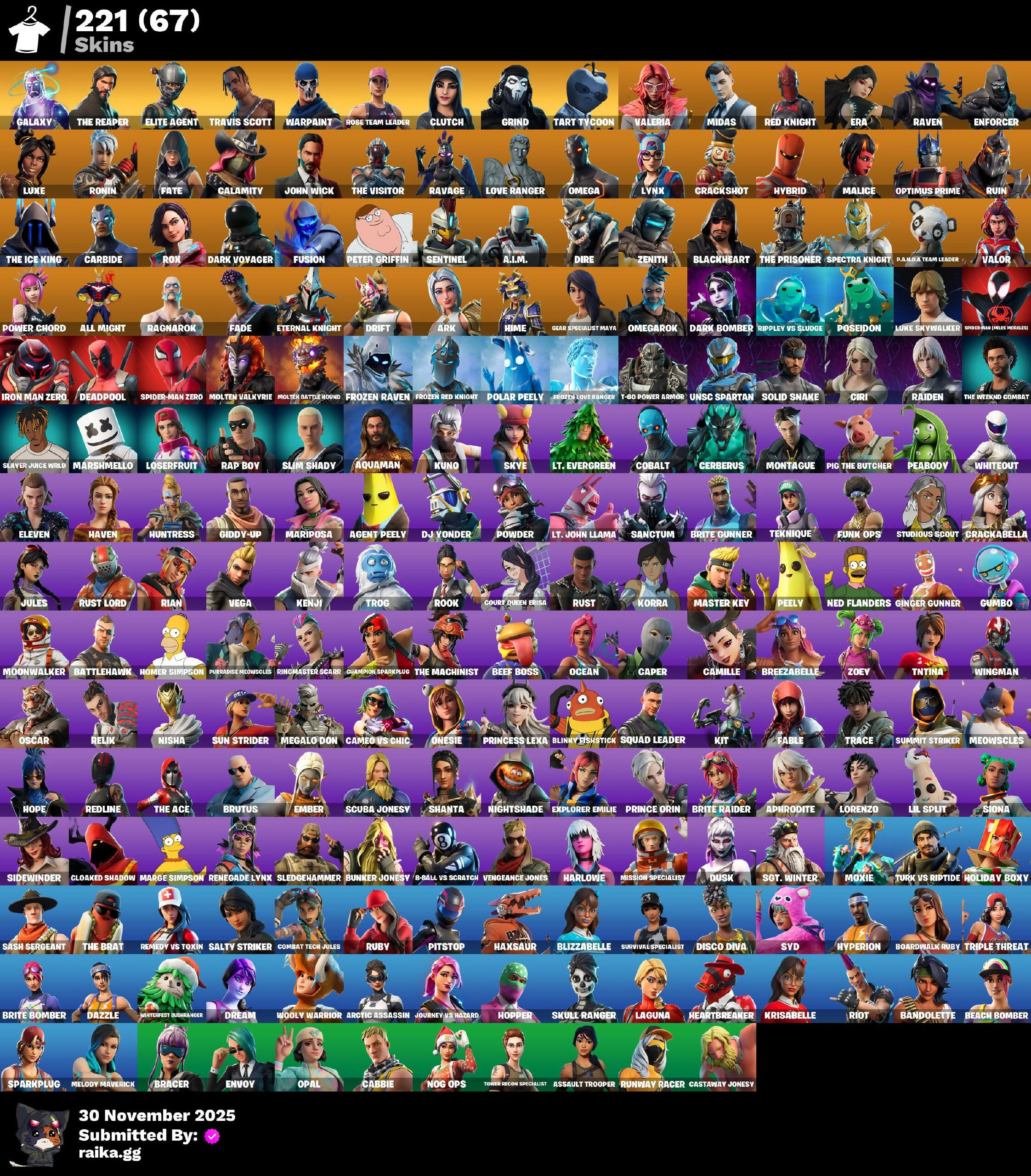[PC/XBOX] 221 skins | OG STW | Galaxy | The Reaper | Elite Agent | Travis Scott | Clutch | Grind | Tart Tycoon | Valeria | Midas | Red Knight | Era | Raven | 150 VB