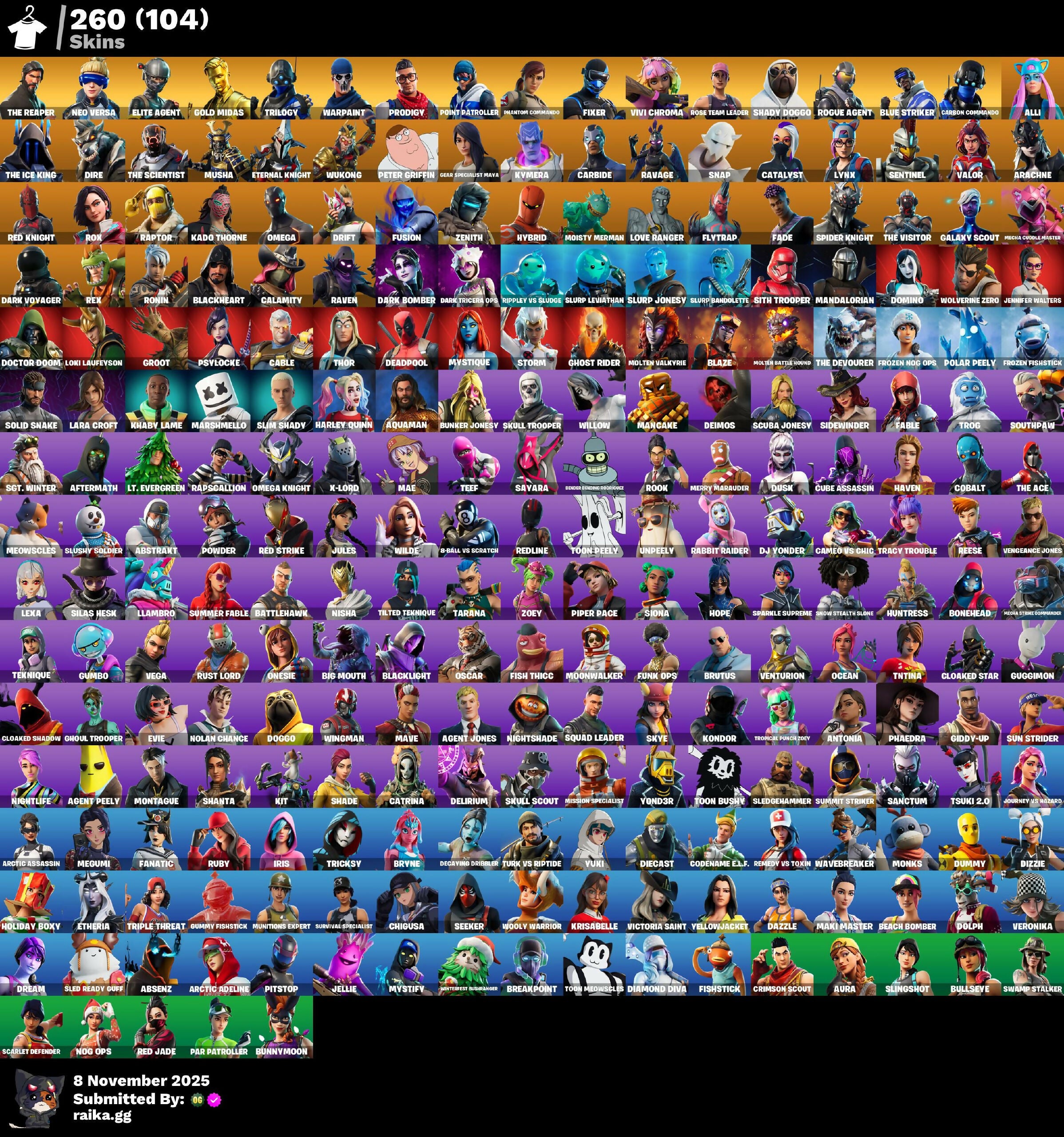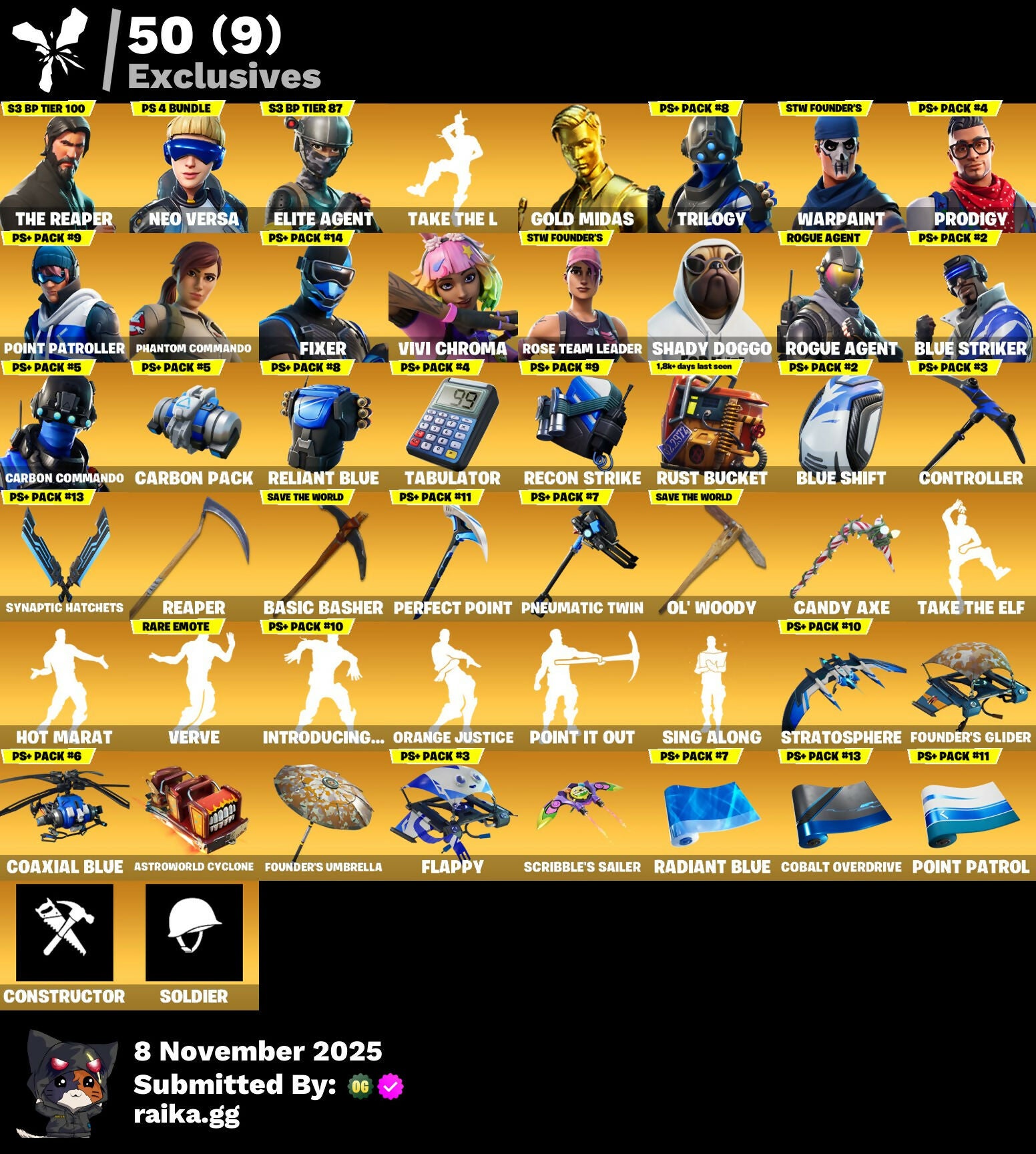 [PC/XBOX] 260 skins | OG STW | The Reaper | Take The L | Neo Versa | Elite Agent | Gold Midas | Trilogy | Prodigy | Point Patroller | Phantom Commando | Fixer | 350 VB
