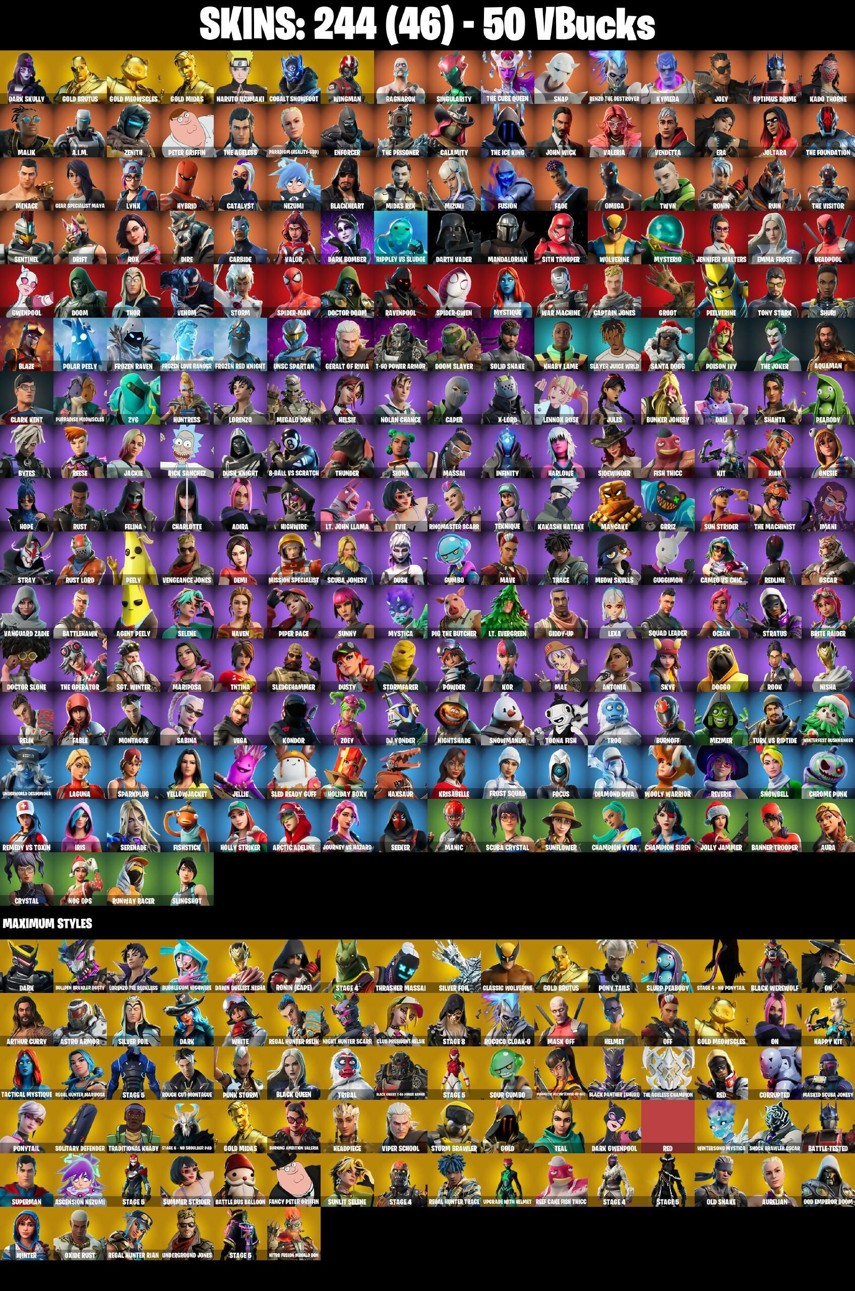 (PC/XBOX) 50 VB) 244 SKINS / Dark Skully | Gold Brutus | Gold Meowscles | Gold Midas | Naruto Uzumaki | Cobalt Snowfoot | Wingman | Ragnarok /