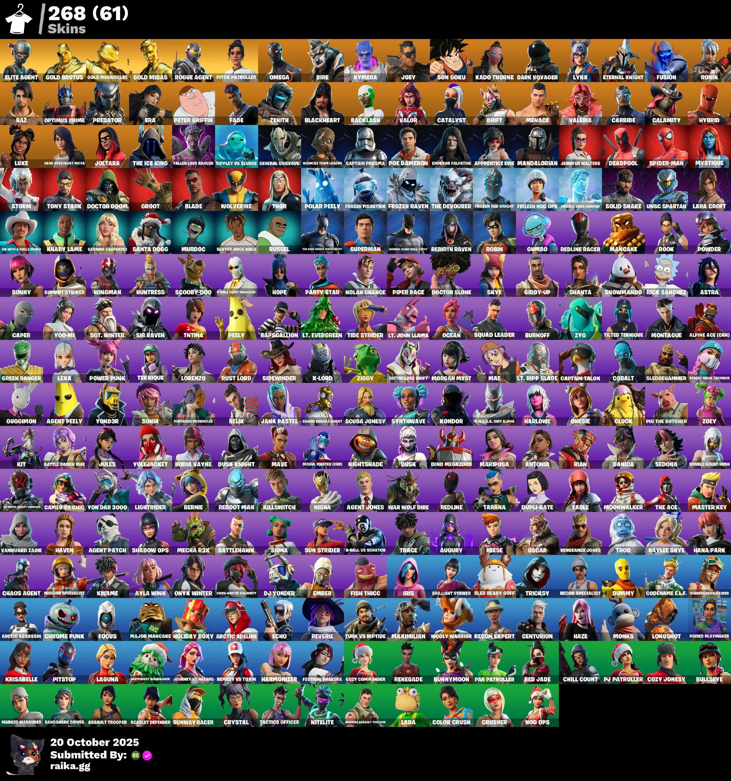 [PC/XBOX/NITTENDO] 268 skins Elite Agent | Gold Brutus | Gold Meowscles | Gold Midas | Rogue Agent | Pitch Patroller | Omega | Dire | Kymera | Joey | Son Goku | 200 VB