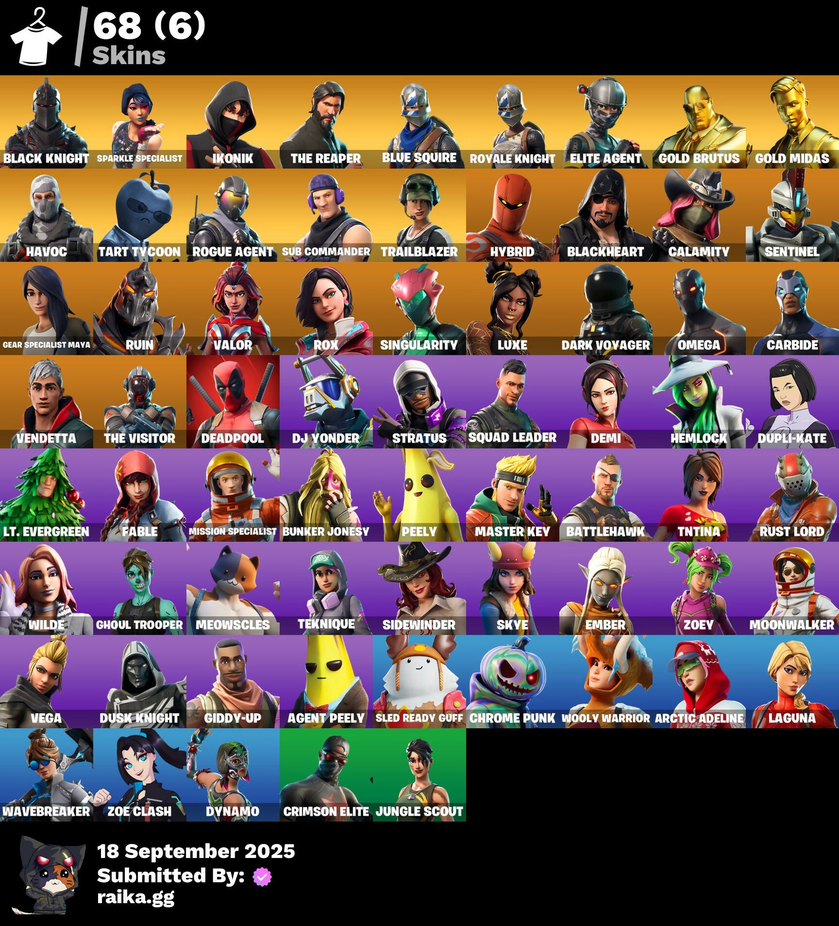 [PC] 68 skins | Black Knight | Sparkle Specialist | IKONIK | The Reaper | Blue Squire | Royale Knight | Elite Agent | Gold Brutus | Gold Midas | 1150 VB / Fortnite