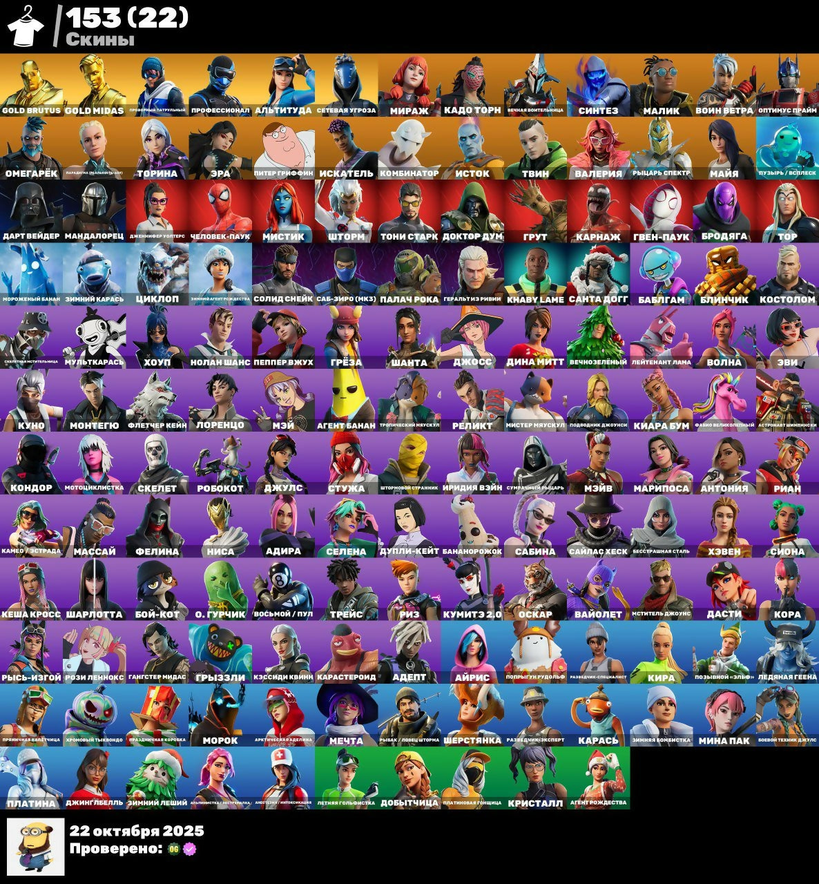 🔥FAT AC🔥210 BACKPACK🔥198 PICK🔥CRUCIAN🔥CYBERSKINS🔥EXCLUSIVES🔥DELT TRAVIS SCOTTA🔥BP 11-14🔥DESCRIPTION👇, Sale, skins 153