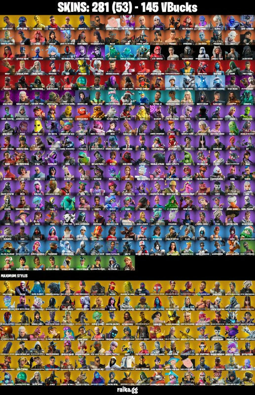 281 skins | OG STW | Travis Scott | Astro Jack | Gold Midas | Prodigy | Joey | Peter Griffin | The Cube Queen | Paradigm (Reality-659) | Torin | 145 VB