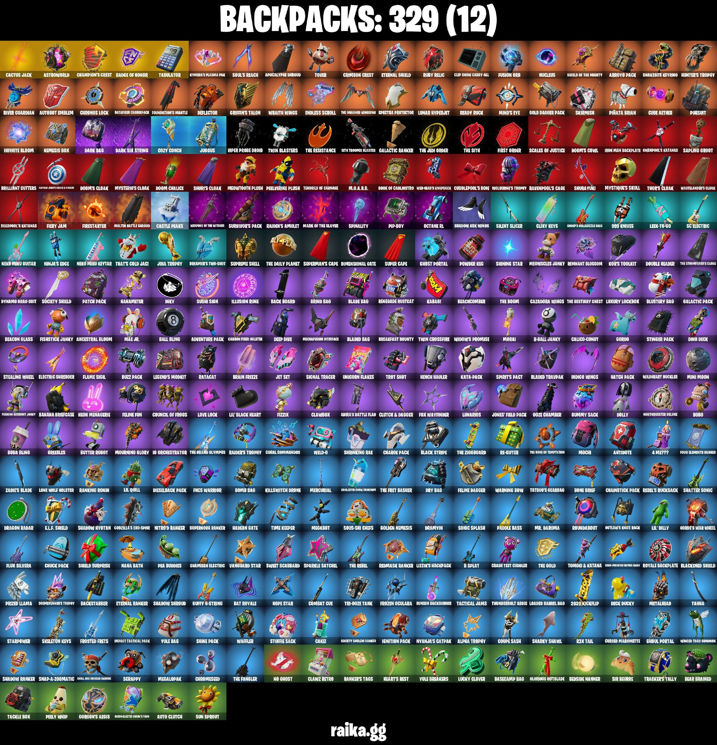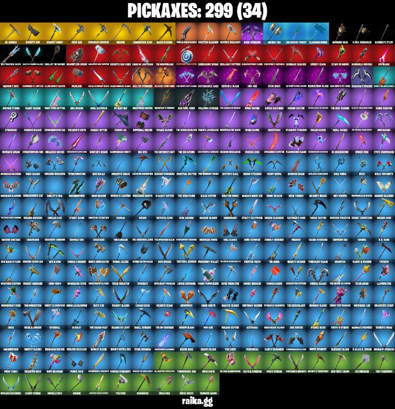 (Note: The above is a partial transcription due to the large number of names and some repetition visible in the image. Please verify exact spelling and completeness from the image directly.), (Snikt!), 02.57am’s Omega, 10 Orchestrator, 2000 Kiloblood, 2020 Kickflip, 4 Me???, 8 Splat, 8-Ball Janky, 999 Knives, A Warrior Prepares, A.I.M., Abstract, Adira's Battle Flag, Adventure Pack, Aeromancer Moth’s Scythe, Air Shredder, Al Pretty, Alpha Theory, Alpha Trophy, Amazing Cube, Anarchy Axe, Ancestral Bloom, Ancestral Dream, Anger Cutler, Antidote, Antinode, Apex Rebellion, Apocalypse Shroud, Apocalyptic Dragon, Aquaman’s Trident, Archon, Armory Smasher, Arrivald Nerd, Arroyo Pack, Assassin Edgware, Astro Prince, Astroworld, Auto Clutch, Autobot Emblem, Autumn Crusader, Autumnella, Awalker, Ax Blade, Axe Maccio, Azalea’s Claws, Azarath Metrion Zinthos!, Azurity Scythe, B-Split, Baby Spice, Back Board, Backstabber, Bad-Mouthed Doom's Torch, Bad-Mouthed Mojo Mary, Badge of Honor, Balance Board, Balanced Blades, Baledan Gates, Ball Bling, Banana Briefcase, Banding Kombat, Band’s Boomlet, Bank Shots, Banobo Beak, Baron’s Hoard, Basecamp Bag, Basic’s Blade, Bat Royale, Batagar, Battle Blessing, Battle Bone, Battlehawk, Beachcomber, Beacon Glass, Beaky Beast, Bean Bag, Bear Brained, Beaststalker, Beatzbunny, Bedside Manner, Beep Beep, Berskeny Basher, Betail Ethereal, Big Bite, Bird Call, Bit Of Evil, Black Axis, Black Eye’s Blades, Black Fang, Black Knight’s Mantle, Black Panther, Black Panther Hammer, Black Stripe, Blackened Shield, Blackheart, Blackout, Blade Bag, Bladechaser, Bladed Bag, Bladed TrapValk, Blades of Light, Blankette Ekkoru, Blast Off, Blazer Cousin, Blazin Bud, Blinding Beam, Blitz Axe, Block Becky, Blood Burn, Blood Thorns, Blowin’ Up, Blue Bomb, Blue Bull, Blue Squire, Blue Striker, Bluster Bag, Blustery Bag, Boba Bling, Boba Snack, Bobby Hawk, Bobo, Boing!, Bomb Bag, Bone Back, Bone Brief, Bone Master, Bonehellet Staves, Boney’s Quake, Bonk'rit Blacer, Boogie Down, Book of Caoljustro, Boomin’, Boots 'N' Cats, Bouncer, Brain Freeze, Breakfast Bounty, Breaking Point, Brilliant Cutters, Brite Moves, Brutus, Bunker Jonesy, Bunny Slugs, Bunsen Backburner, Butter Robot, Butter Secret, Buzz Pack, Buzz Peck, Buzzflix, Buzzkill, Caaci, Cactus Jack, Caffeinated, Cake!, Calico-Conut, Call Me, Cantoor, Capacitor, Captain America, Captain Corsair, Captain John's Insignia Pauldr, Captain Llamerica, Carbide, Carbon Fiber Holster, Carbon Midnight, Card Drop, Cardistry, Carnage, Castle Peaks, Castle Ruins, Catalyst, Cauldron Chill, Cazadora Wings, Cerberus Talon, Chainsaws, Chainstick Pack, Chamber Of Light, Champion's Crest, Championship Chomp, Charge Pack, Chef’s Special, Cherry Dawn, Choice Knit, Chopper Crowler, Chromesseed, Chronos Lock, Chuck Pack, Chun-Li, Clawbox, Clawed Indicator, Claws & Breaker, Clawz Retro, Clean Sweep, Clifftop S Hogger, Clip Prince Garm, Clutch & Dagger, Cluxy Keys, Cobalt Torcgon, Codename E.L.F., Codsworth’s Cleanup, Coin Flip, Cold Force, Combat Cue, Combat Slice, Conch Call, Condor Talon, Conjure Weapon, Conqueror’s Claim, Controller Crew, Coolblade Breakers, Coral Comanche, Coral Commandos, Core Paul’s Axe, Council of Frogs, Count It!, Coupé Sash, Cozy Cannon, Cozy Conch, Crack It, Crash Test Cuddler, Crescent Shadow, Crimson Crest, Crimson Sci, Crookbe Nox's Blade, Crowly Gnasher, Crown Laser, Crowning Achievement, Crushboner, Cryoclaw Blade, Crystal Claws, Crystal Fang, Crystal Wind, Cube Aether, Cuddlepool's Bow, Cup Snow Carry-All, Curse Scepter, Cursed Claw, Cursed Coldy, Cursed Marionette, Cyberbroken Axe, Cyclo Curl, D.M.S.I Blader, DICE Lettec, DJ Yonder, Daga Blade, Dagger Dance, Daredevil, Dark Bag, Dark Guardian, Dark Six String, Dark Stranger, Dark Voyager, Datafire Chargepack, Dawn Trail Gunfire, Dawn’s Scythe, Dead Is The Money, Dead Mawdoom, Deadpool, Deadpool's Katanas, Deck Ducky, Decky, Decorato Extreme, Deep Dive, Deflector, Demi, Descatter, Devoted Zero Axe, Diamond Throne, Diamond Tricks, Dice Roll, Dieselback Pack, Digital Lock, Digital Mortar, Dill With It, Dimension Outcast, Dimensional Gate, Dimensional Gift, Dino Deck, Disassemble, Diva Fever, Dividual’s Bight, Do The Split, Docs Blammler, Doctor Doom, Doge Buddy, Doggy Tush, Dolly, Doom Chalice, Doom's Cloak, Doom's Cowl, Doompuncher, Doom’s Domain, Double Header, Down Grid, Doze Dab, Dr. Small Lucky, Draco's Claw, Dragmarian Runeo, Dragon Miners, Dragon Radar, Dragon Saber, Dragonpoint Pick, Dramatic Flares, Dramyin, Dreamburner's Trophy, Dreamer's Two-Shot, Drift, Droop, Drumels, Dry Bag, Duelist’s Card Trick, Dusk Scorcher, Dye Blade of Pain, Dynamo Orav-Suit, E.L.F. Shield, Echo, Electric Shredder, Electro Shuffle, Elite Agent, Emergent, Endless Scroll, Enforcer, Eternal Enfrus, Eternal Ranker, Eternal Shell, Eternal Shield, Evasive Maneuvers, Exclamation Hammer, Expressionism, FNCS Warrior, Fade, Fall Of The Fallen, Fang Dance, Fanglee Kiss, Fashion Accident Janky, Feline Dagger, Feline Danger, Feline Fun, Felion's Claw, Fiercerer, Fiery Jam, Fire Selector, Fire Show, Firestarter, Fireworks Salvo, First Order, Fishing Slicer, Fishstick Janky, Fist Bump, Fizzix, Flaky Feast, Flame Sigil, Flashback Breakdown, Flashmob's Claw, Flicketer, Flippin’ Away, Flutcher’s Glaive, Flux Silvera, Foe Night Stalker, Foil Flex, Foundation's Mantle, Four Elements Banner, Fox Wayfinder, Fright Funk, Front Page Pose, Frontier, Frostclaw, Frosted Frets, Frosty Slicer, Frozen Corlass, Frozen Oculara, Frozen Treat Cart, Fruit Up, Fusion, Fusion Orb, Galactic Bolt Constructor, Galactic Pack, Galactic Patrol, Galactic Pick, Galactic Ranker, Galax-2-Demmatic-200, Galaxian Glasses, Galimichur, Gas Mask, Get Out Of Your Mind, Ghost Portal, Ghosty’s Stick 66, Ghoul Portal, Giddy-Up, Giovanni, Glass Arrow, Glitch, Glorious Giftblade, Glowy Keys, Godslogan Rex, Godzilla's Exo-Spine, Gold Bundle, Gold Dagger Pack, Golden Daemon, Golden King, Golden Nemesis, Gord