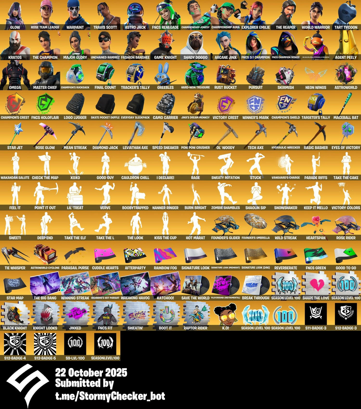 OG Fortnite Account☑️940 Skins☑️Glow☑️Travis Scott (Full Bundle)☑️Agent Peely (60% Gold)☑️The Reaper☑️Omega (Purple Lights)☑️Kratos (Full Bundle)☑️WC 2019 - Bundle☑️FNCS 3:1 Champion☑️The Champion☑️Major Glory☑️Leviathan Axe☑️Take the L☑️2,550 V-Bucks☑️