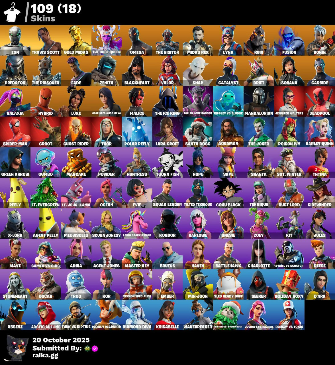 [PC/PSN/NITTENDO] 109 skins | Eon | Travis Scott | Gold Midas | The Cube Queen | Omega | The Visitor | Midas Rex | Lynx | Ruin | Fusion | Ronin | Predator | 250 VB