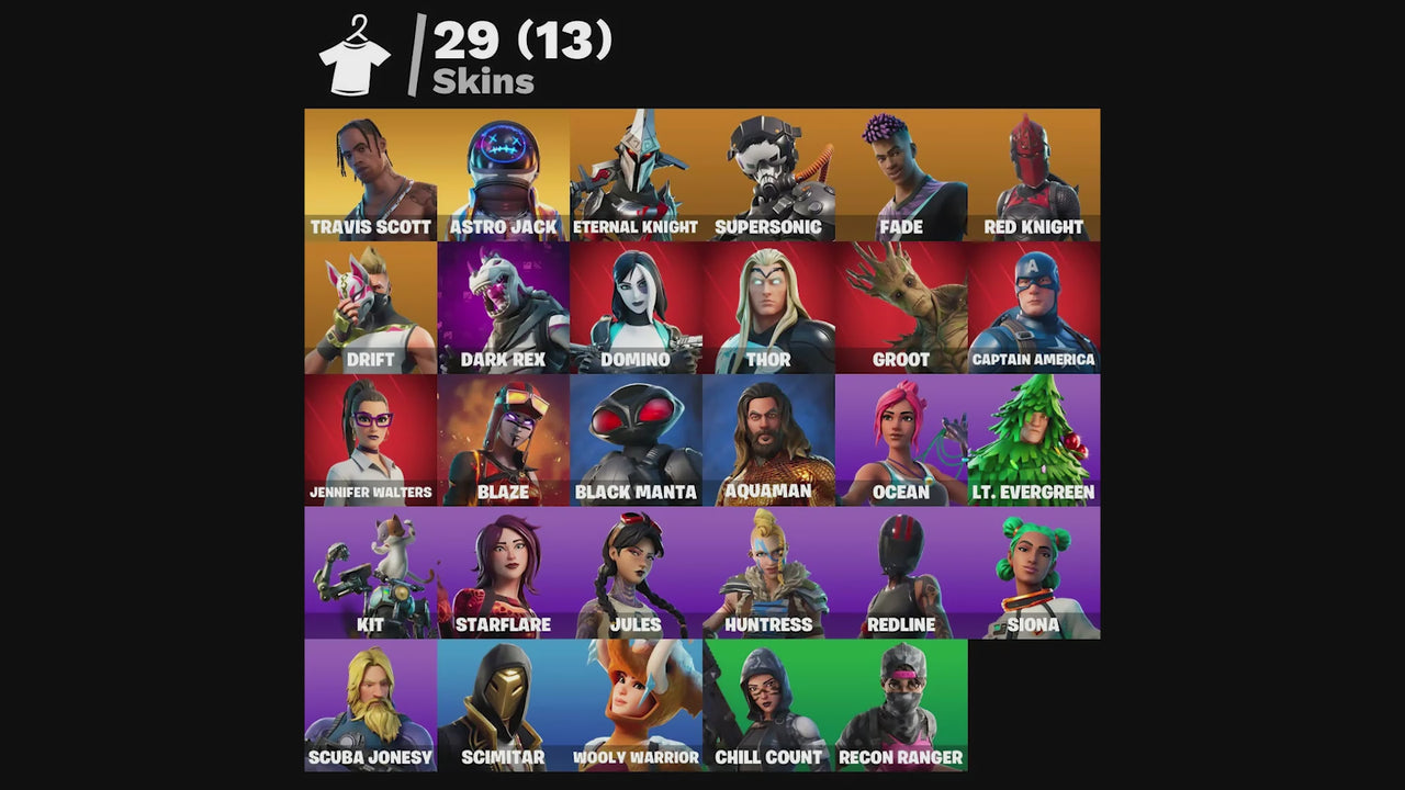 [PC/PSN/XBOX] 29 skins | Travis Scott | Astro Jack | Eternal Knight | Supersonic | Fade | Red Knight | Drift | Dark Rex | Domino | Thor | Groot | 410 VB / Fortnite