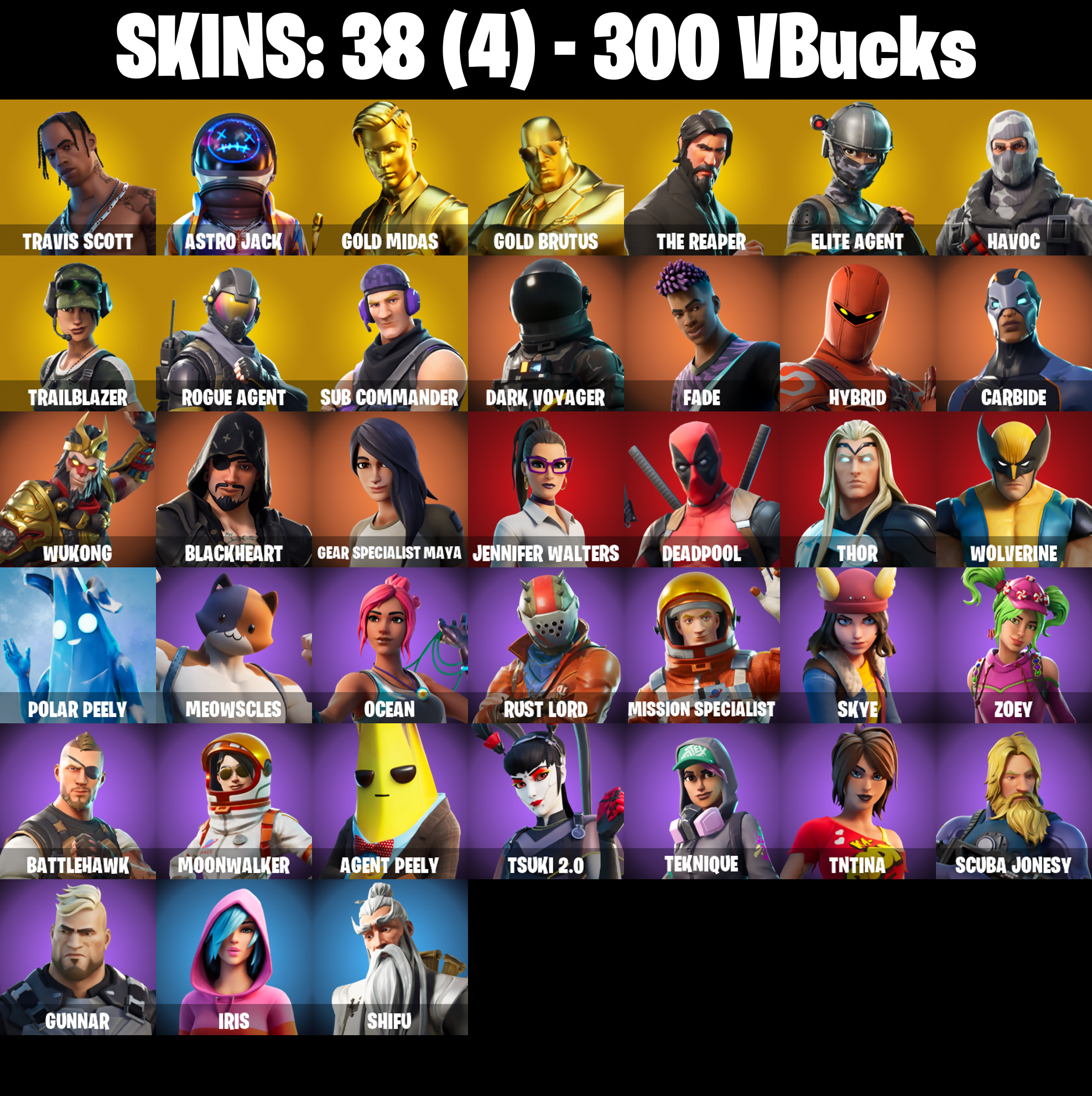 PC/PSN/XBOX |38 skins | Travis Scott | Astro Jack | Deadpool | Gold Midas | Gold Brutus | The Reaper | Elite Agent | Havoc | Backup Plan | #B713
