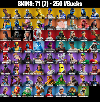 PC/PSN/XBOX |71 skins | Travis Scott | Royale Knight | Blue Squire | Deadpool | Gold Midas | Orange Justice | Royale Shield | Squire Shield | #B785