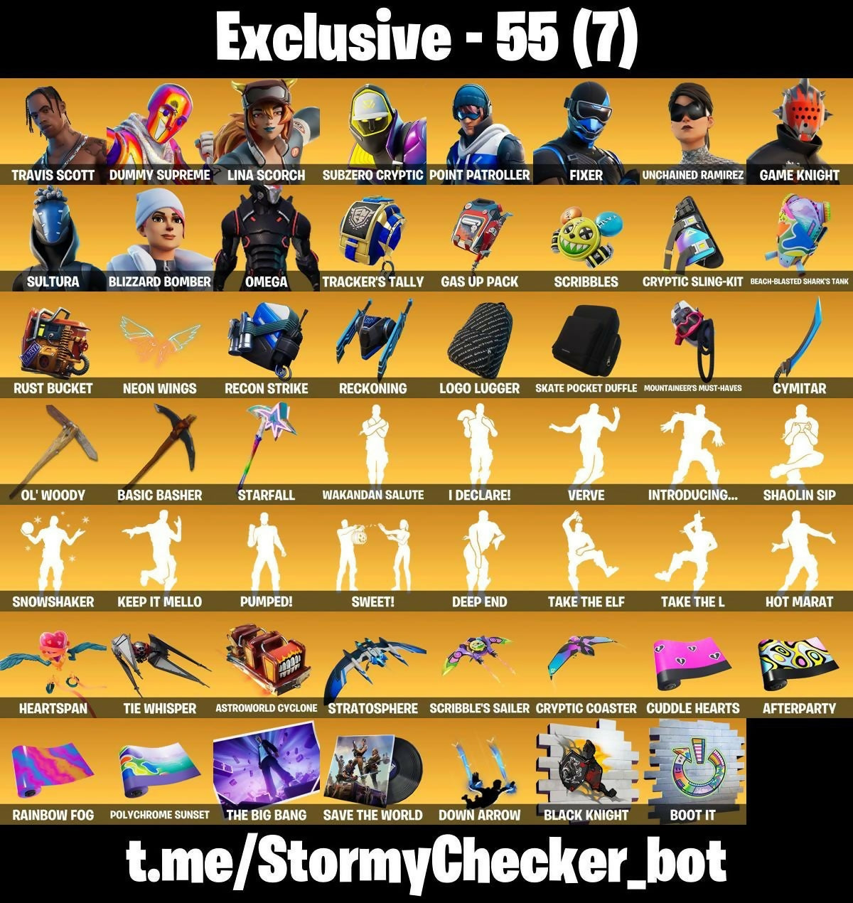 [PC/XBL/PSN] | 393 Skins | Travis Scott | Dummy Supreme | Lina Scorch | Subzero Cryptic | Point Patroller | Cymitar | Ol' Woody | Basic Basher | 50 VB