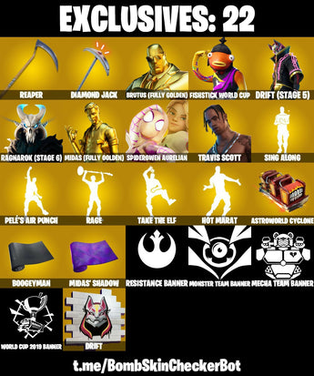 [PC,XBOX,PSN] 220 skins | Travis Scott | Gold Midas | WORLD CUP | Gold Brutus | Cloud Striker | Sentinel | Kymera | Rox