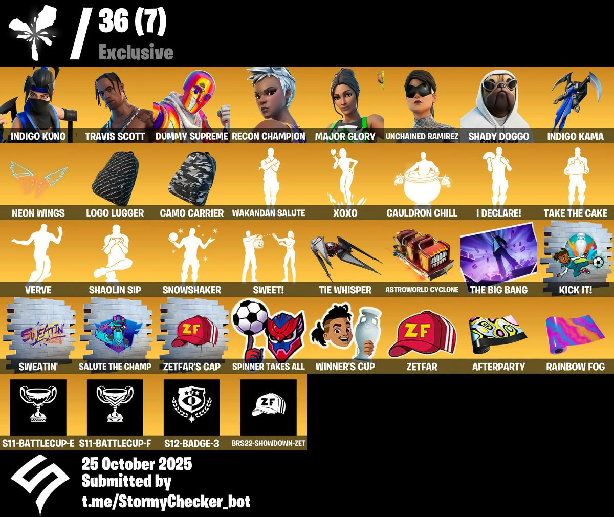*RARE* Fortnite Account☑️197 Skins☑️Indigo Kuno☑️Travis Scott☑️Dummy Supreme☑️Recon Champion☑️Major Glory☑️Lara Croft☑️Recon Expert☑️Focus☑️Sparkplug☑️Birdie☑️Indigo Kama☑️Banner Cape☑️Sun Sprout☑️Star Wand☑️Driver☑️Laugh it up☑️Toosie Slide☑️One Shot☑️
