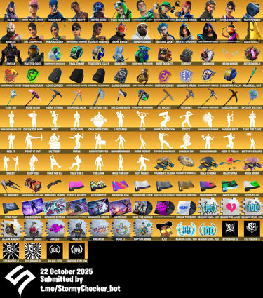 【100-200 SKINS】 OG Chance for Travis Scott | OG STW | IKONIK | Galaxy | Sparkle Specialist | Black Knight | Merry Mint Axe | Take The L | The Reaper or Other Skins .$120.00$59.99 /Account