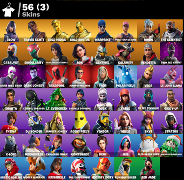 [PC/PSN/XBOX] 56 SKINS + TRAVIS SCOTT + GLOW + GOLD MIDAS + OG STW + GOLD BRUTUS + CALAMITY + DARK JONESY + SINGULARITY$125.00$84.99 /Account