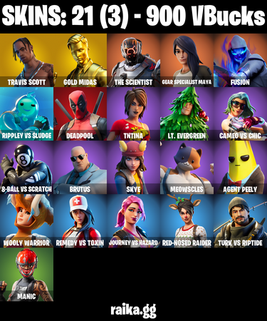PC/PSN/XBOX 329 skins - Travis Scott - Astro Jack - Gold Midas - Gold Brutus - Gold TNTina - Gold Meowscles - John Wick - Fixer - #B183$228.99$211.99 /Account