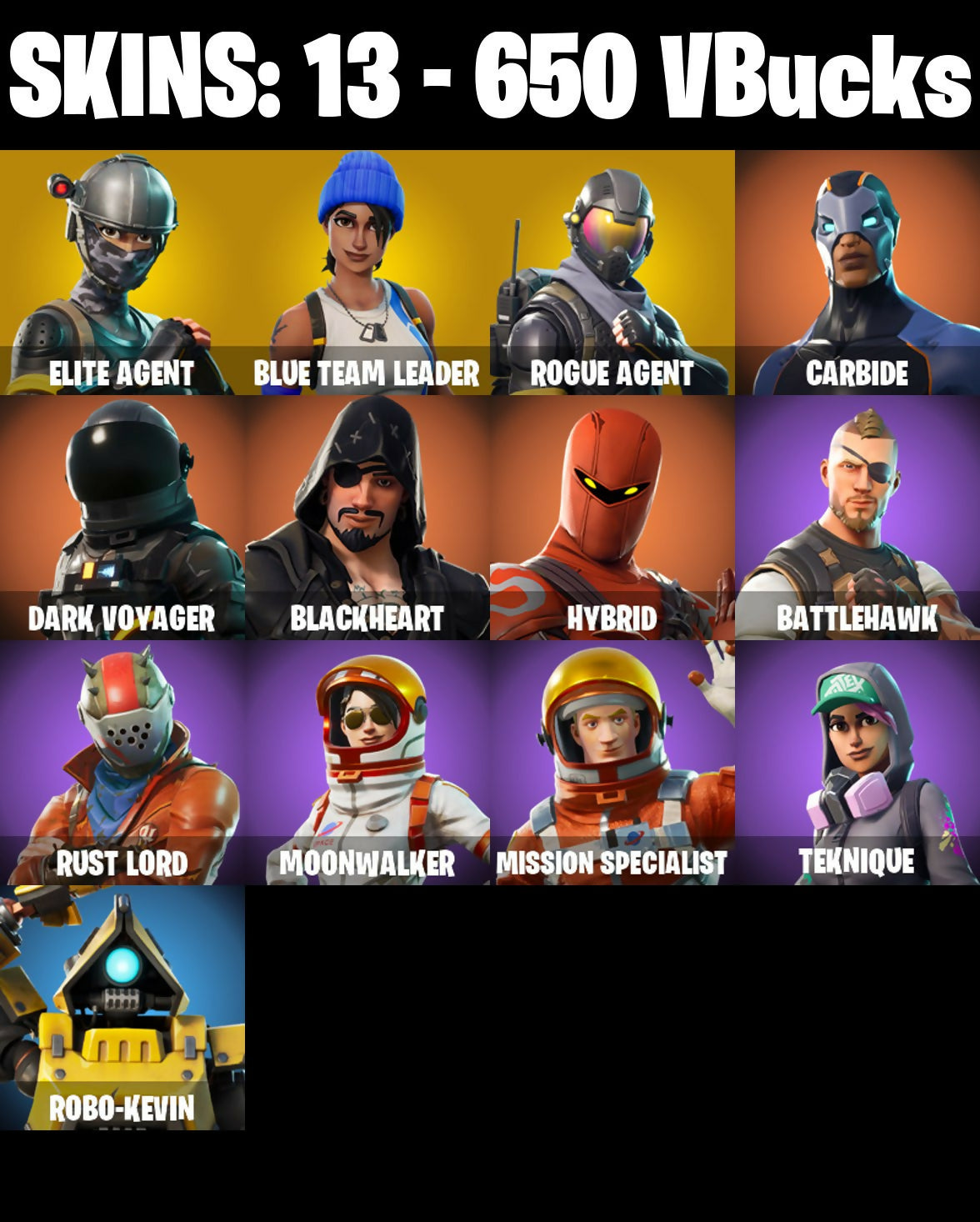🎆13 SKINS ⚡️PC/XBOX⚡️ ELITE AGENT 👑 BLUE TEAM LEADER 👑 ROGUE AGENT 👑 CARBIDE 👑 DARK VOYAGER 👑 BLACKHEART 👑 HYBRID 👑 BATTLEHAWK 👑 RUST LORD ⚡️ 650 VB 📧 MAIL CHANGEABLE SOON #M613