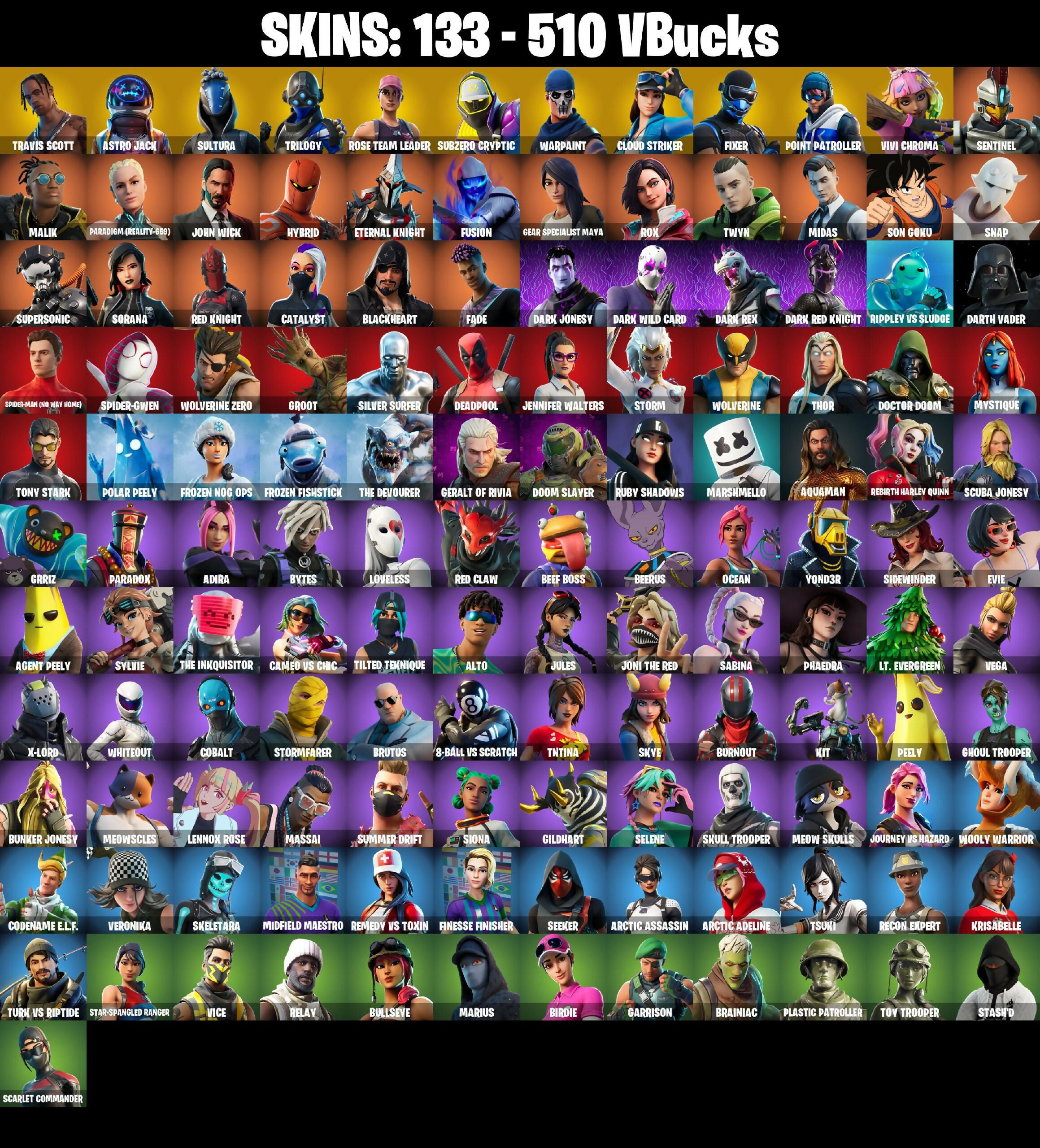 🎆133 SKINS ⚡️PC/XBOX⚡️ TRAVIS SCOTT 👑 ASTRO JACK 👑 SULTURA 👑 TRILOGY 👑 SUBZERO CRYPTIC 👑 CLOUD STRIKER 👑 FIXER 👑 POINT PATROLLER ⚡️ 510 VB 📧 MAIL CHANGEABLE SOON #M632