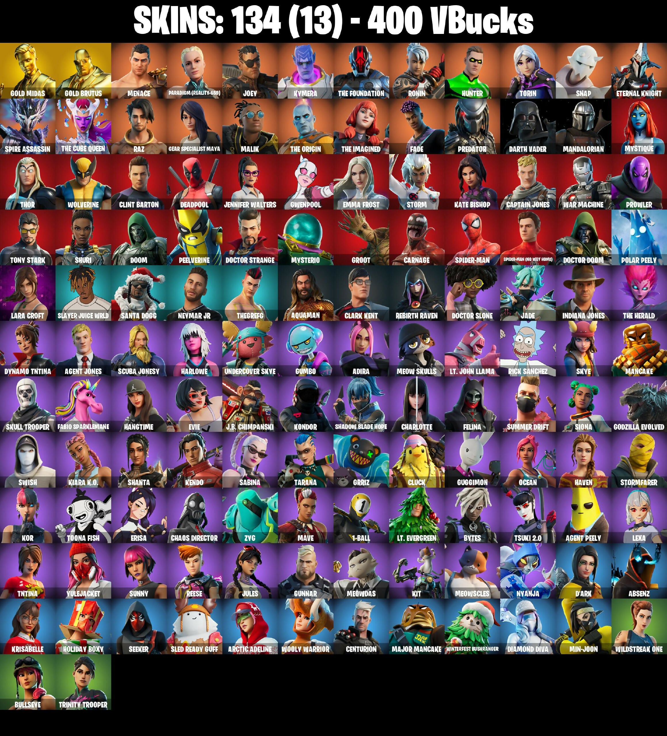 🎆134 SKINS ⚡️PC/PSN/XBOX⚡️ GOLD MIDAS 👑 GOLD BRUTUS 👑 MENACE 👑 PARADIGM (REALITY-659) 👑 JOEY 👑 KYMERA 👑 THE FOUNDATION 👑 RONIN 👑 HUNTER ⚡️ 400 VB 📧 MAIL CHANGEABLE SOON #M578