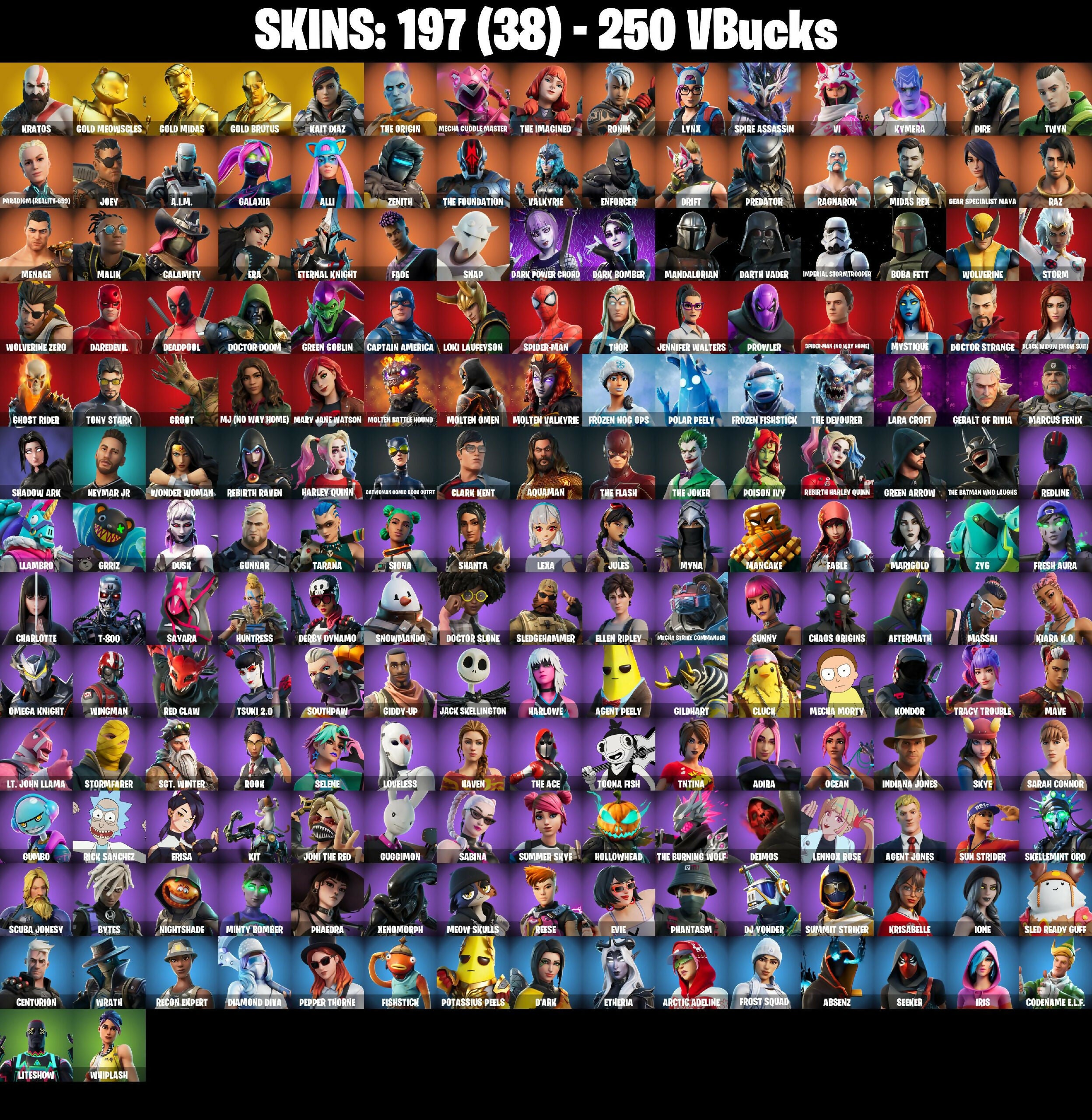 🎆197 SKINS ⚡️PC/PSN⚡️ KRATOS 👑 GOLD MEOWSCLES 👑 GOLD MIDAS 👑 GOLD BRUTUS 👑 KAIT DIAZ 👑 THE ORIGIN 👑 MECHA CUDDLE MASTER 👑 THE IMAGINED ⚡️ 250 VB 📧 MAIL CHANGEABLE SOON #M496