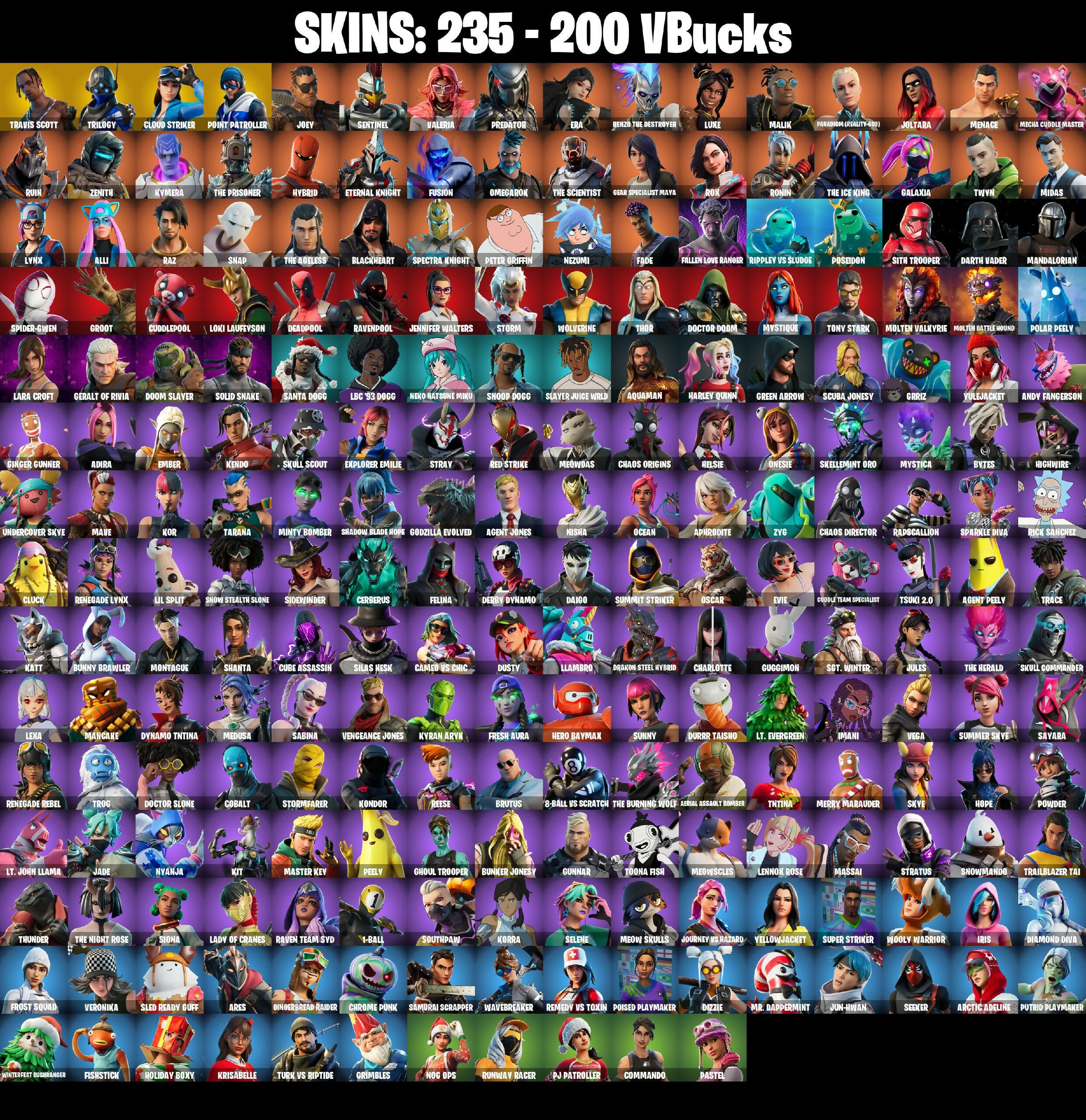 🎆235 SKINS ⚡️PC/XBOX⚡️ TRAVIS SCOTT 👑 TRILOGY 👑 CLOUD STRIKER 👑 POINT PATROLLER 👑 JOEY 👑 SENTINEL 👑 VALERIA 👑 PREDATOR 👑 ERA ⚡️ 200 VB 📧 MAIL CHANGEABLE SOON #M625