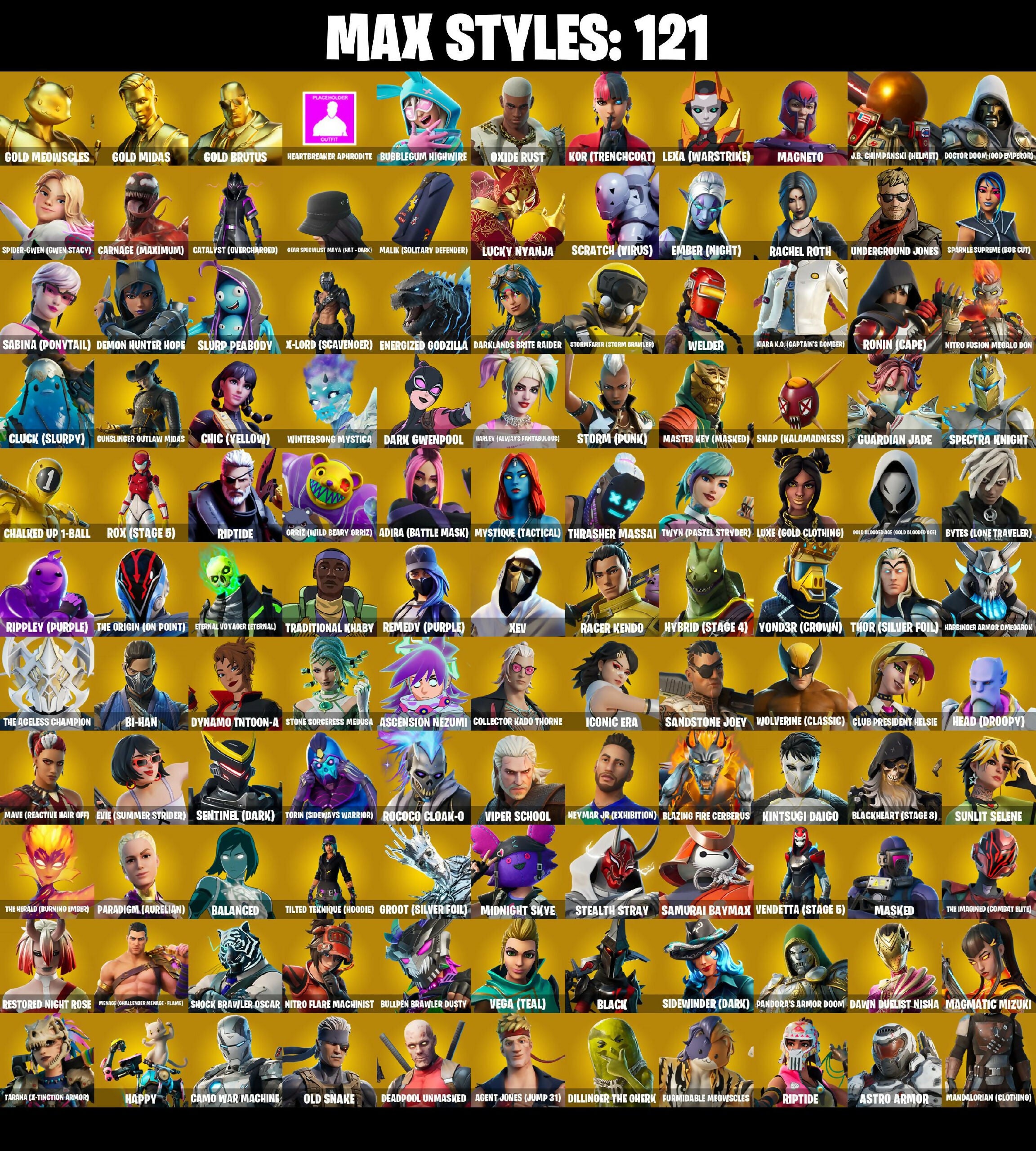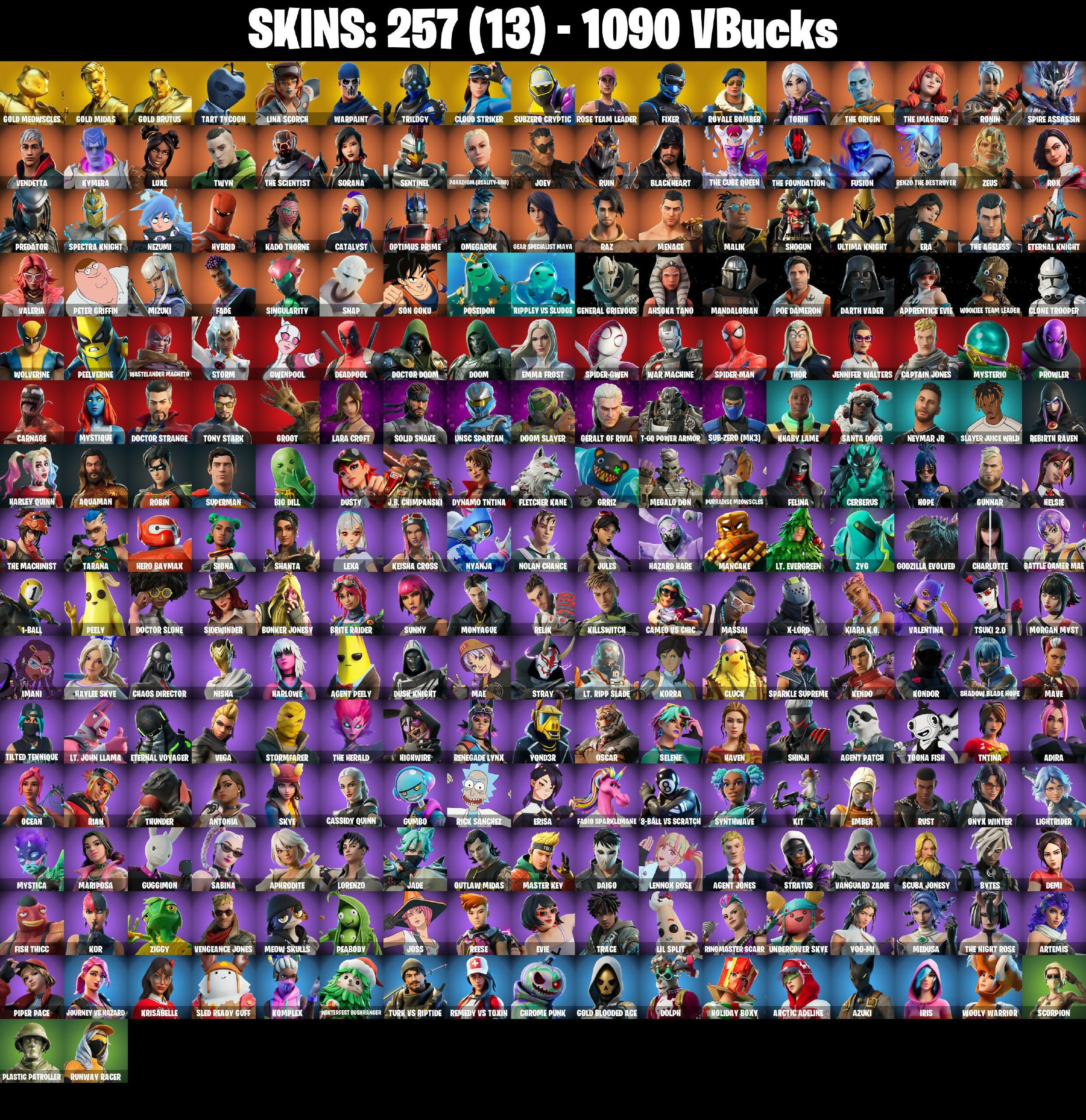 🎆257 SKINS ⚡️PC/XBOX⚡️ GOLD MEOWSCLES 👑 GOLD MIDAS 👑 GOLD BRUTUS 👑 TART TYCOON 👑 LINA SCORCH 👑 TRILOGY 👑 CLOUD STRIKER 👑 SUBZERO CRYPTIC ⚡️ 1090 VB 📧 MAIL CHANGEABLE SOON #M504