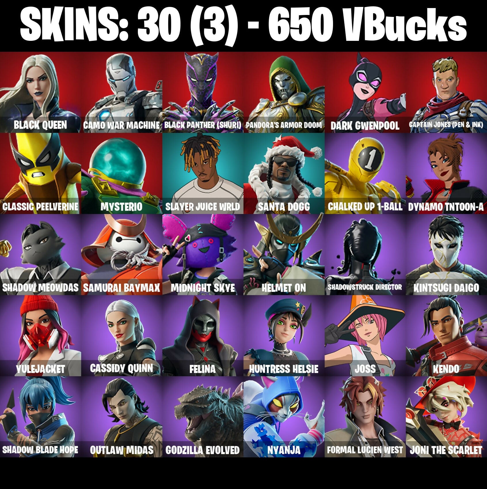 🎆30 SKINS ⚡️PC/PSN/XBOX⚡️ BLACK QUEEN 👑 CAMO WAR MACHINE 👑 BLACK PANTHER (SHURI) 👑 PANDORA'S ARMOR DOOM 👑 DARK GWENPOOL ⚡️ 650 VB 📧 FULL ACCESS #M696