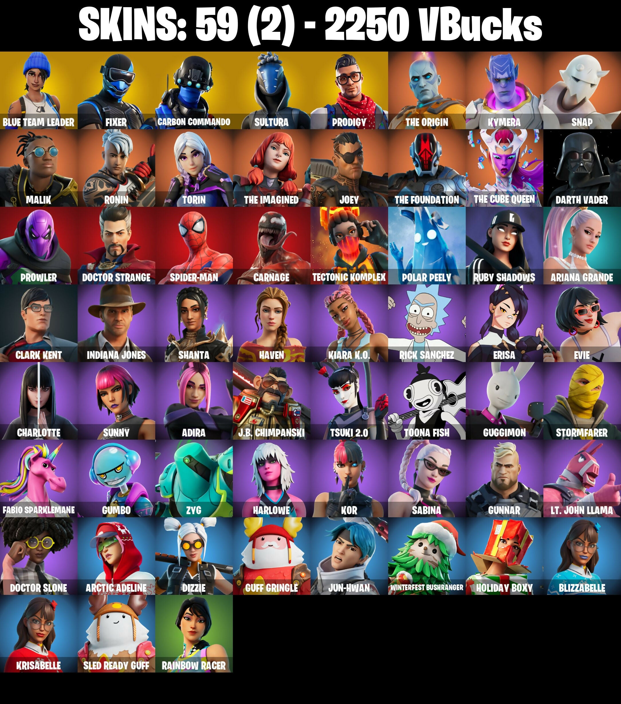 🎆59 SKINS ⚡️PC⚡️ BLUE TEAM LEADER 👑 FIXER 👑 CARBON COMMANDO 👑 SULTURA 👑 PRODIGY 👑 THE ORIGIN 👑 KYMERA 👑 SNAP 👑 MALIK 👑 RONIN 👑 TORIN ⚡️ 2250 VB 📧 MAIL CHANGEABLE SOON #M457