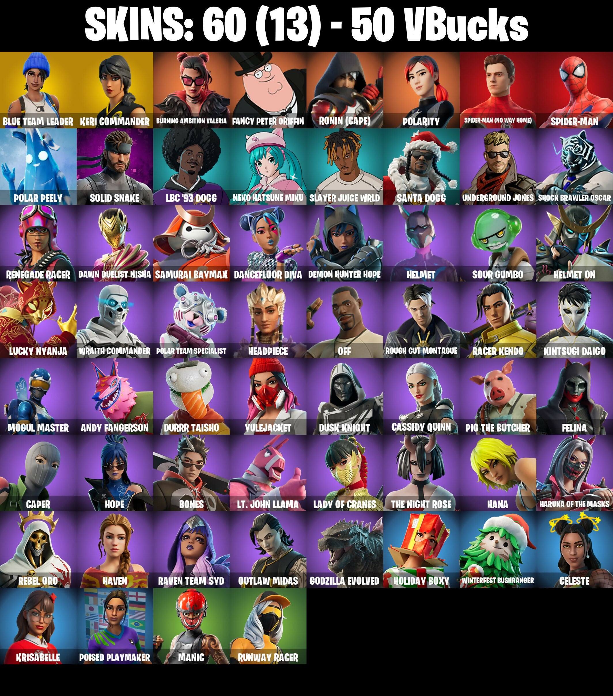 🎆60 SKINS ⚡️PC/PSN/XBOX⚡️ BLUE TEAM LEADER 👑 KERI COMMANDER 👑 BURNING AMBITION VALERIA 👑 FANCY PETER GRIFFIN 👑 RONIN (CAPE) ⚡️ 50 VB 📧 FULL ACCESS #M675