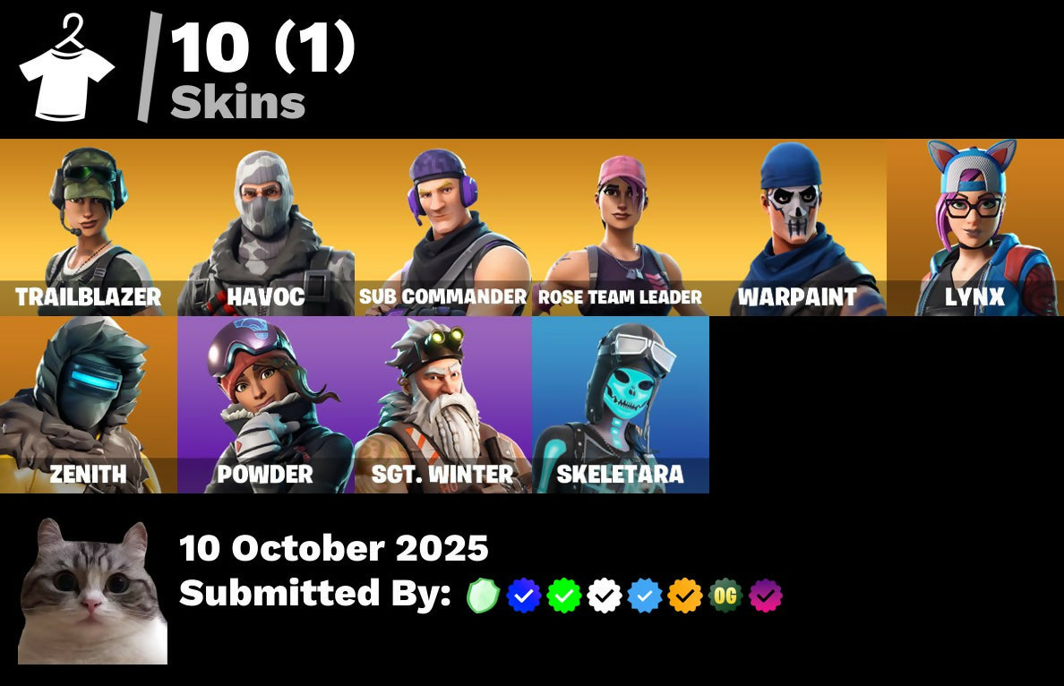 10 Skins ⭐️ OG STW - Trailblazer - Freestylin' - Havoc - Skeletara - Sub Commander - Lynx - Zenith - Powder - Sgt. Winter - Rose Glow - Ol' Woody