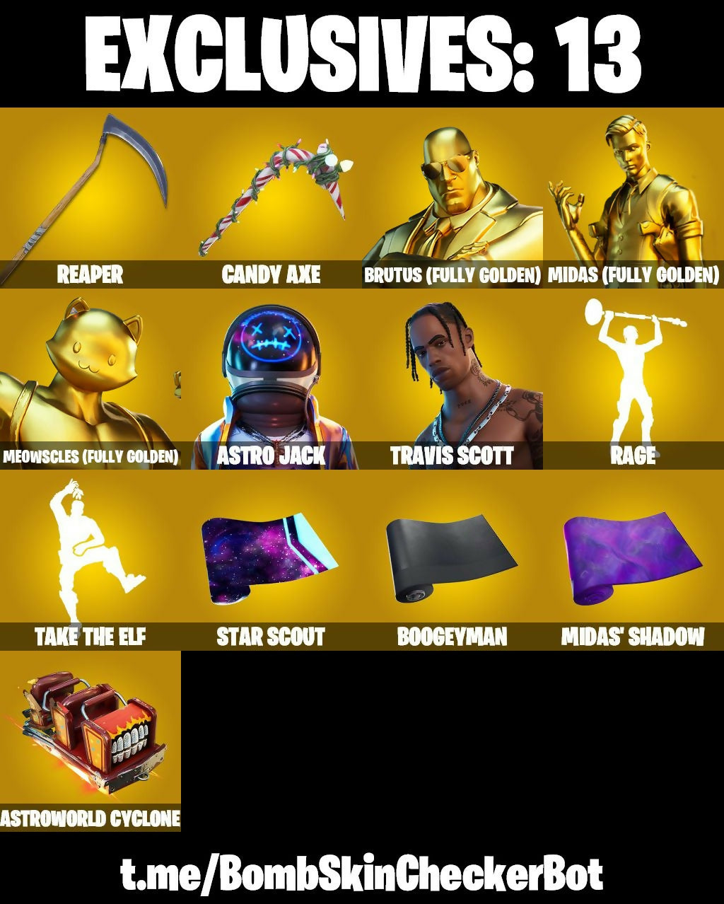 【110 SKINS】TRAVIS SCOTT❤️ASTRO JACK❤️ GOLD MIDAS❤️ GOLD BRUTUS❤️ PARENTAL CONTROL ❤️ (PC/PSN/XBOX)