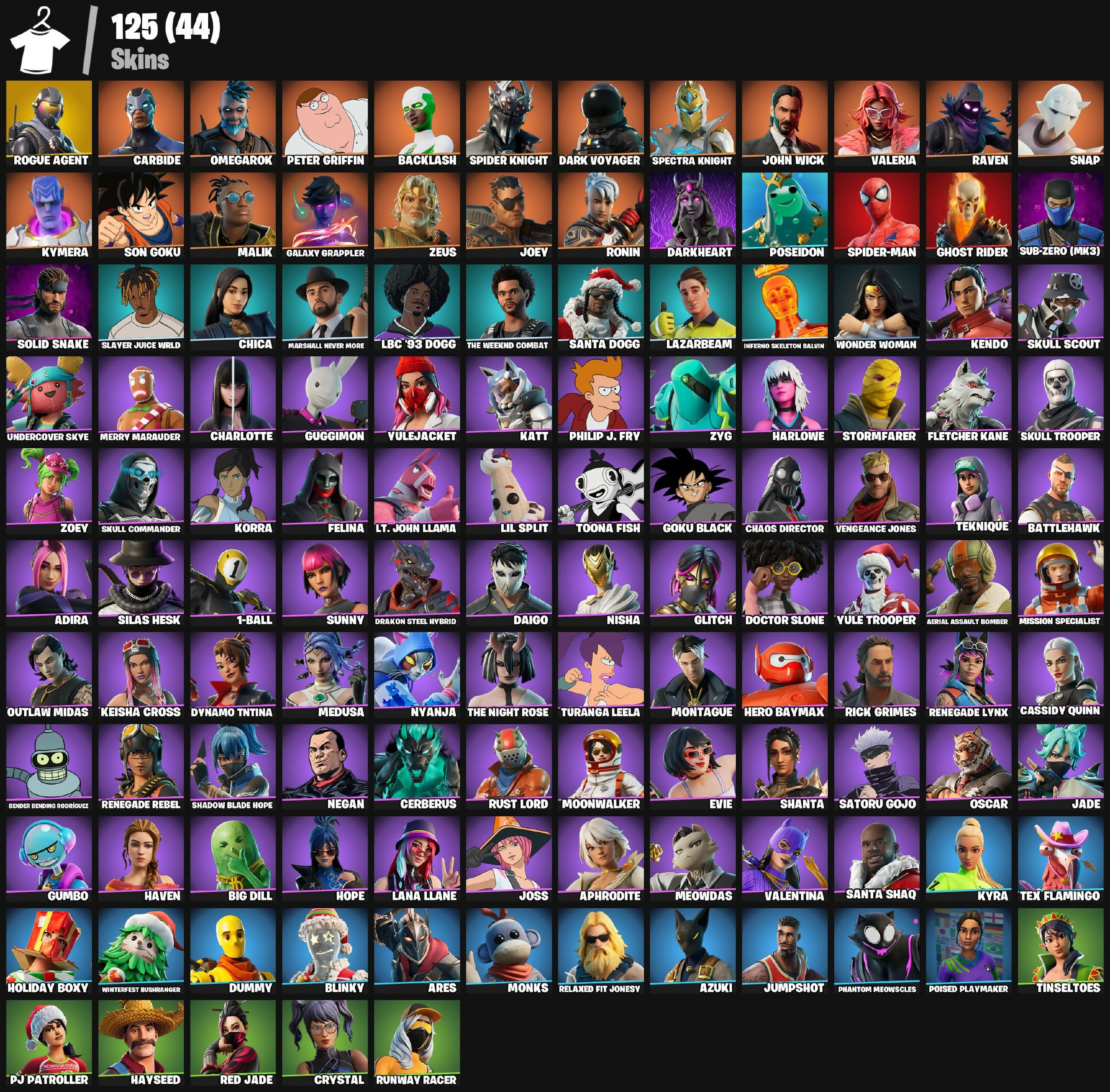 125 skins | Rogue Agent | Carbide | Omegarok | Peter Griffin | Backlash | Take The L| Dark Voyager | 550 VB - [PC/PSN/XBOX]