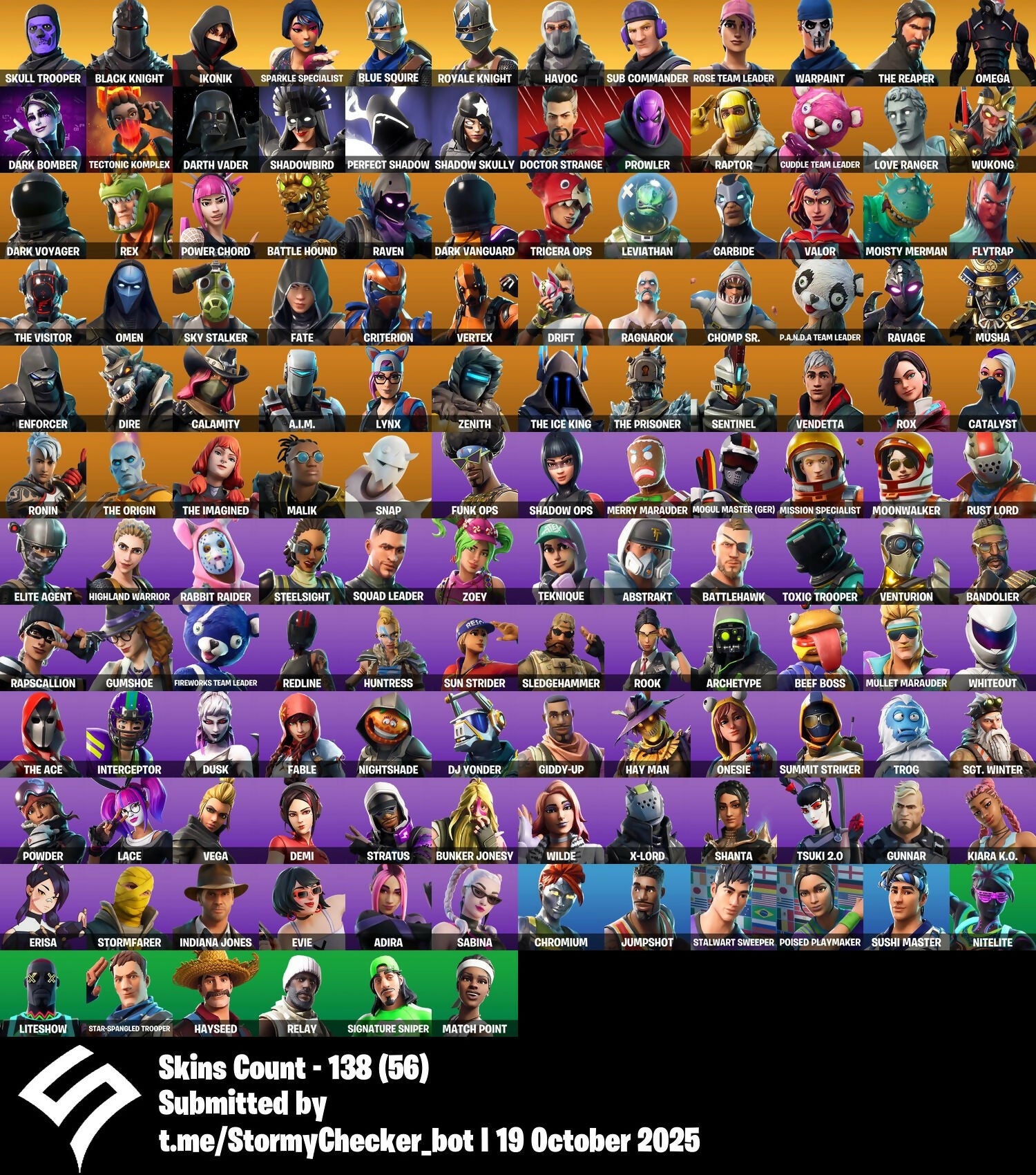 OG Fortnite Account☑️138 Skins☑️OG Skull Trooper (Purple)☑️Black Knight☑️IKONIK☑️The Reaper☑️Omega (Purple Lights)☑️Twitch Prime☑️Black Shield☑️Banner Cape☑️Vision Axe☑️Ice Breaker☑️Laugh it up☑️Scenario☑️Fresh☑️Floss☑️Take the L☑️Mako☑️1,550 V-Bucks☑️