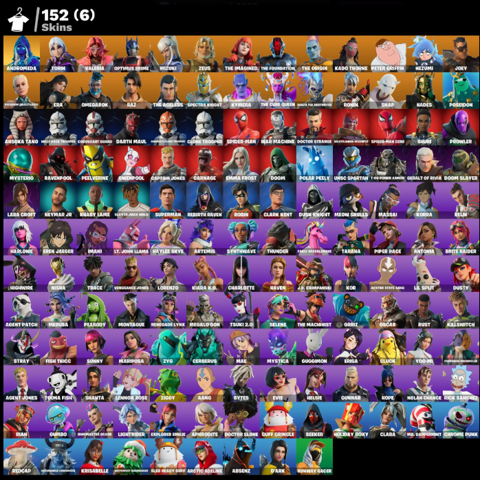152 SKINS PC/PSN/XBOX | Andromeda | Torin | Valeria | Optimus Prime | Mizuki | Zeus | The Imagined | The Foundation | The Origin | Kado Thorne