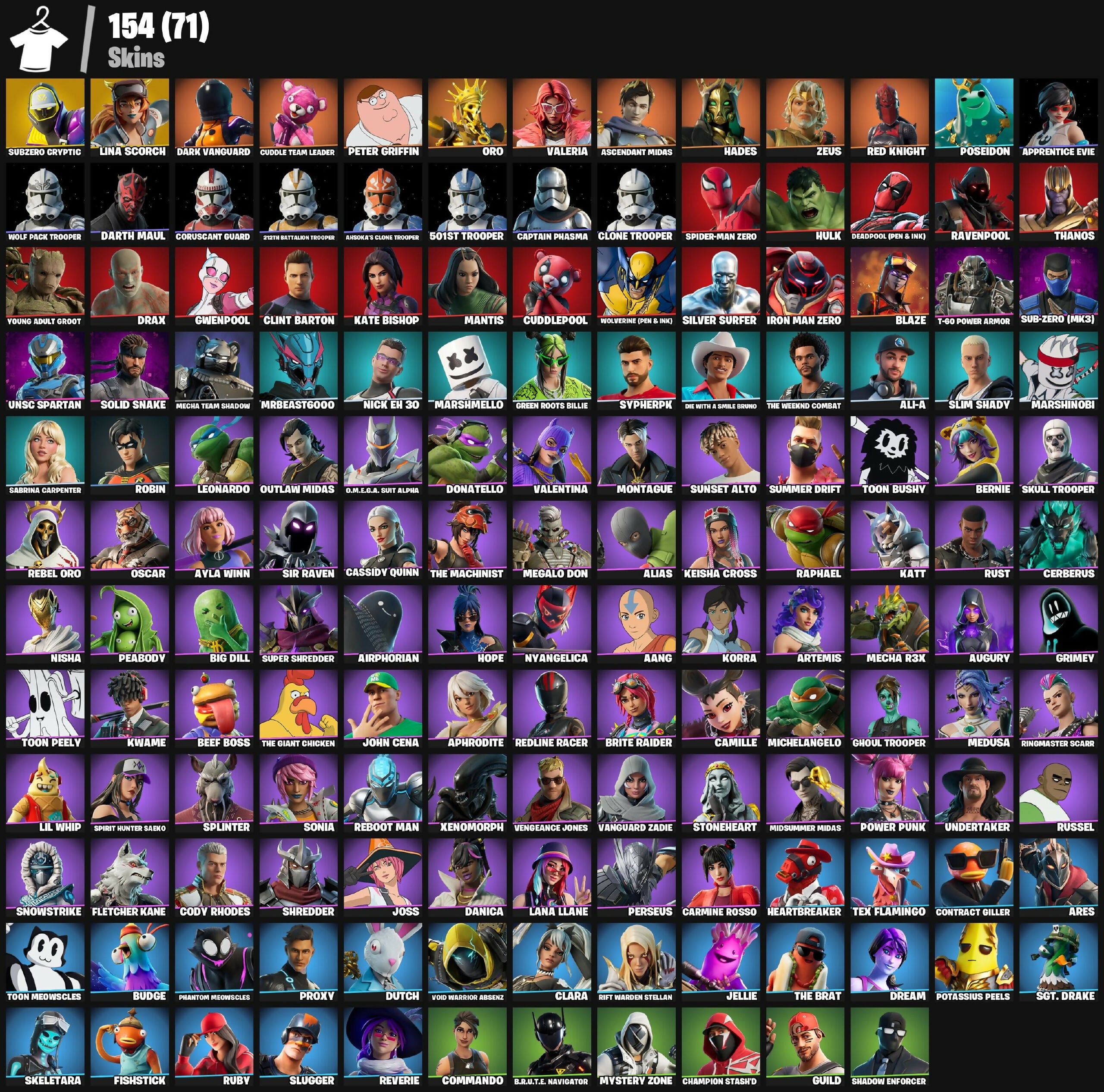 154 skins | Subzero Cryptic | Lina Scorch | Dark Vanguard | Cuddle Team Leader | Peter Griffin | Oro | Valeria | 4300 VB - [PC/PSN/XBOX]