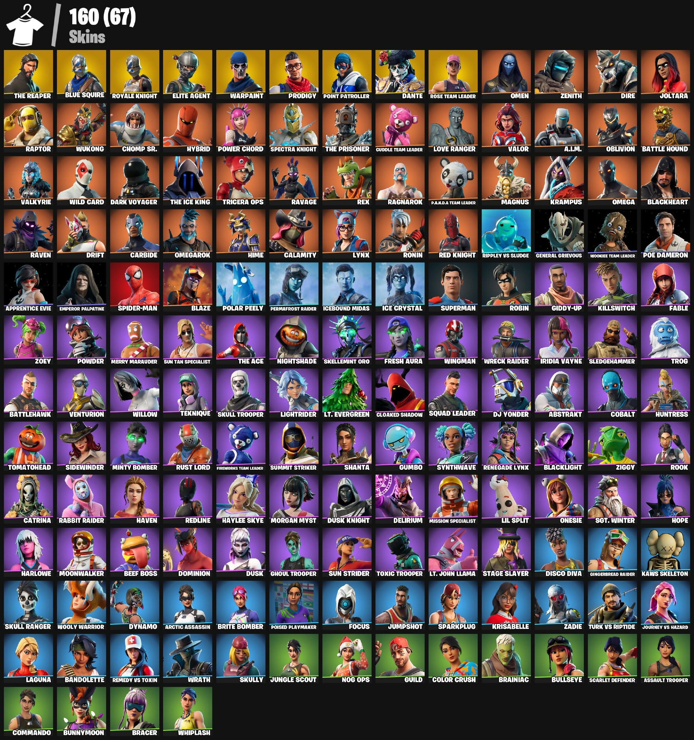 160 skins | OG STW | The Reaper | Blue Squire | Royale Knight | Elite Agent | Prodigy | Point Patroller | Dante | Omen | 535 VB - [PC/XBOX]