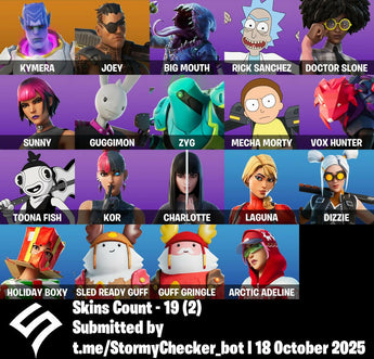 *Chapter 2* Fortnite Account☑️19 Skins☑️Kymera☑️Rick Sanchez☑️Mecha Morty☑️Toona Fish☑️Doctor Slone☑️KOR☑️Dizzie☑️Laguna☑️Artic Adeline☑️Butter Robot☑️Reaper Axe☑️The Rick Dance☑️Boogie Down☑️Invasion Umbrella☑️