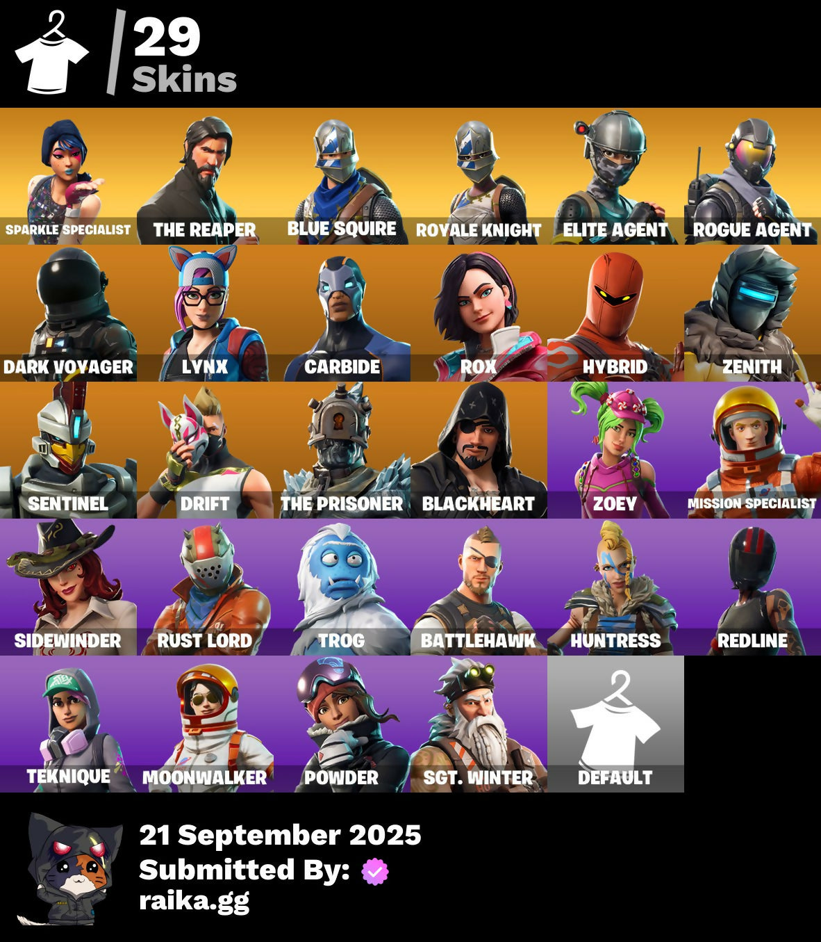 28 SKINS ? SPARKLE SPECIALIST ? THE REAPER ? BLUE SQUIRE ? ROYALE KNIGHT ? ELITE AGENT ? ROGUE AGENT ? DARK VOYAGER ? HYBRID ? BLACKHEART ? 300 VB ?