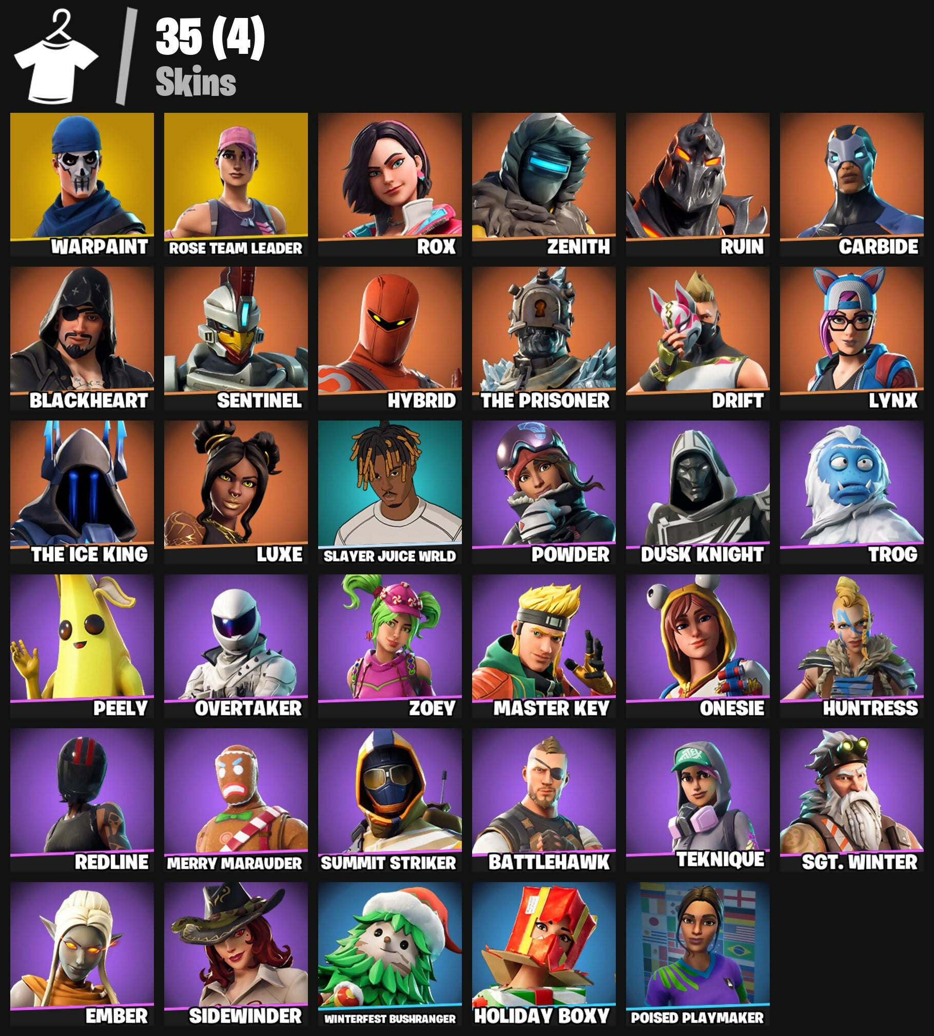 35 skins | OG STW | Rox | Zenith | Ruin | Carbide | Blackheart | Sentinel | Hybrid | The Prisoner | Drift | Lynx | 1700 VB - [PC/PSN/XBOX]