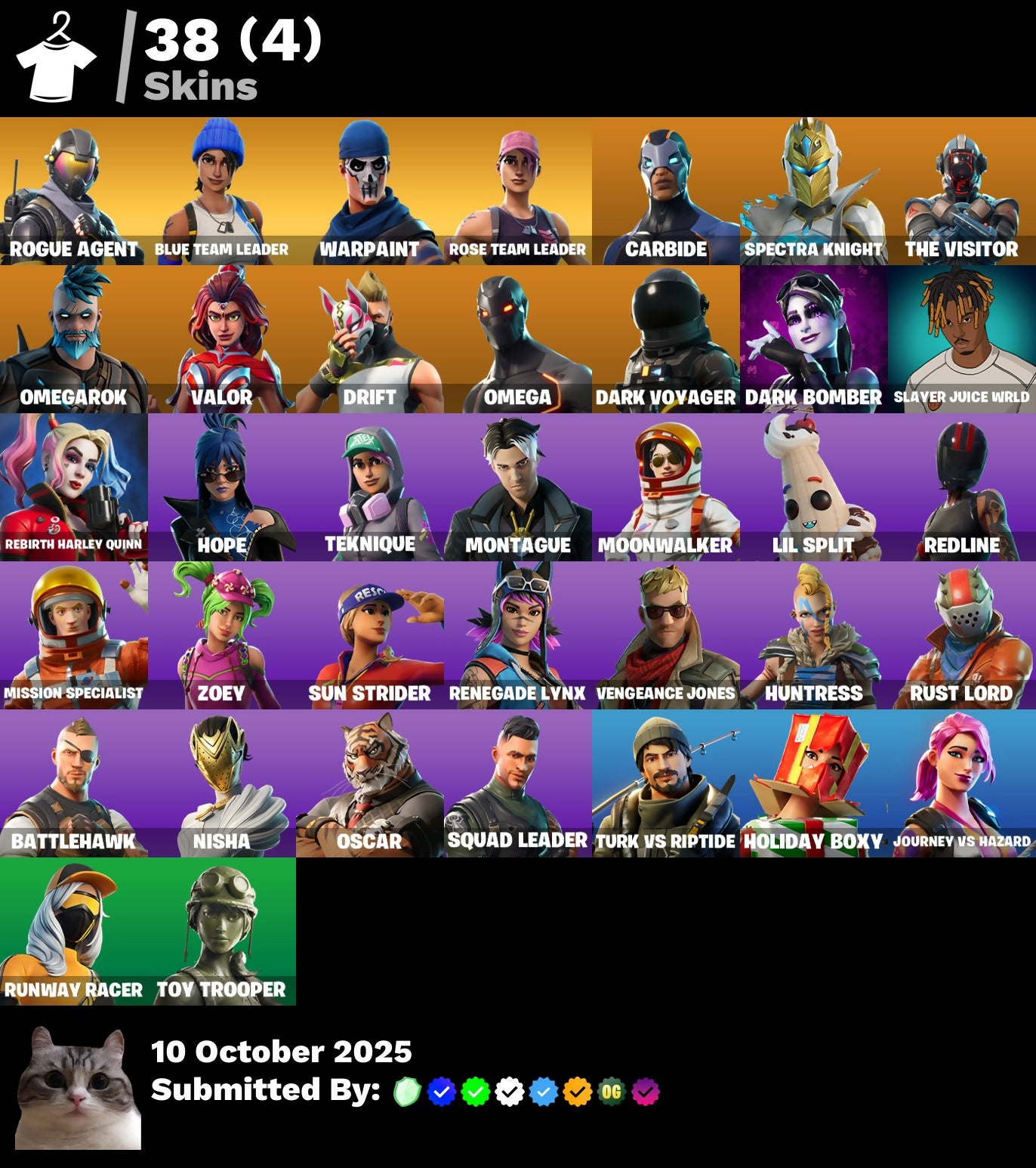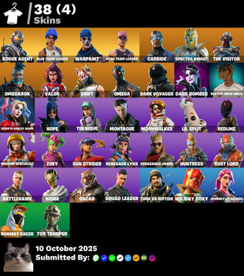 38 Skins ⭐️ OG STW - Take The L - Omega - Rebirth Harley Quinn - Dark Bomber - Drift - Zoey - Orange Justice - Rogue Agent - Redline - Blue Team Leader