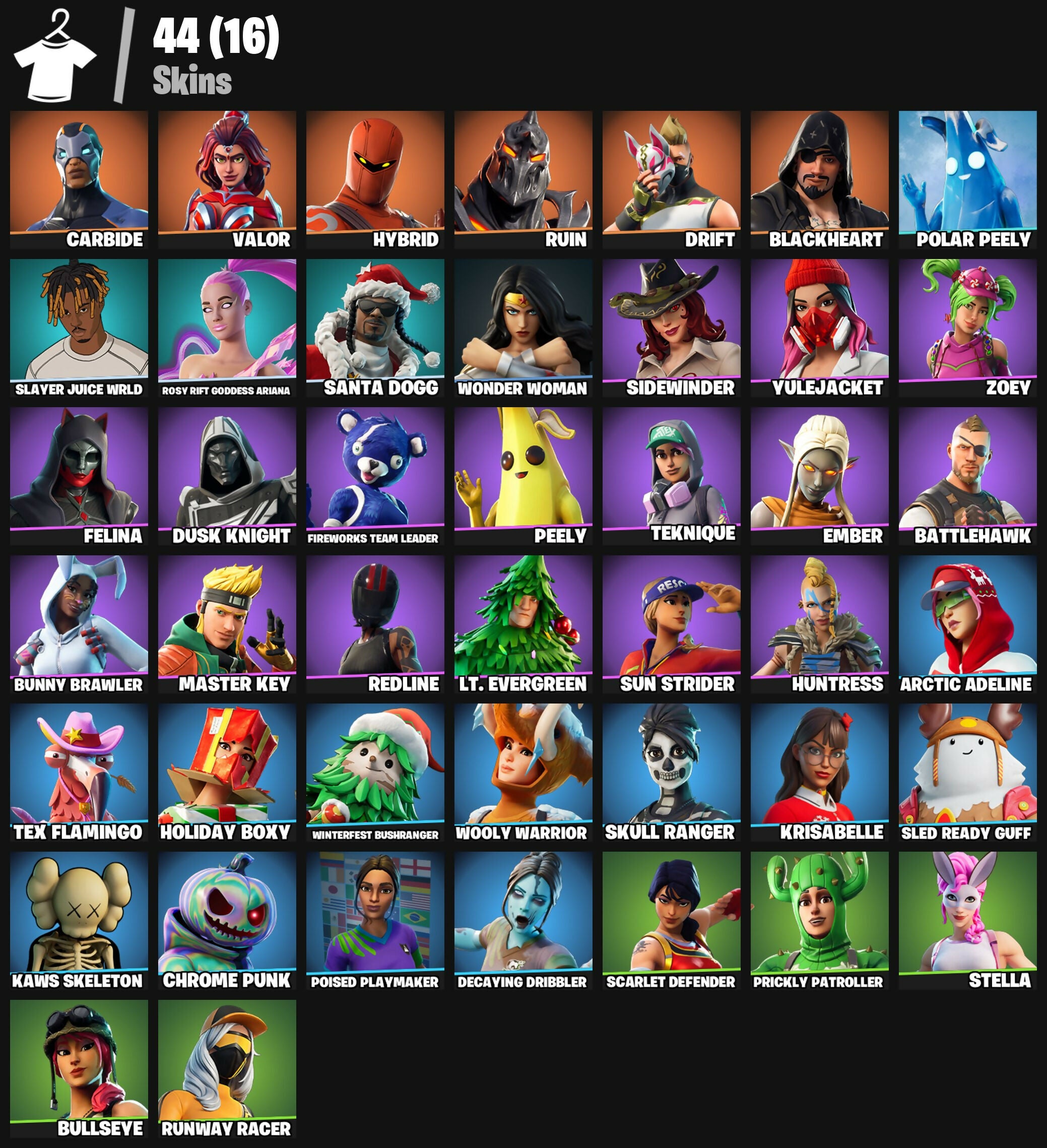 44 skins | Carbide | Valor | Hybrid | Ruin | Drift | Blackheart | Polar Peely | Slayer Juice WRLD | 500 VB - [PC/PSN/XBOX]