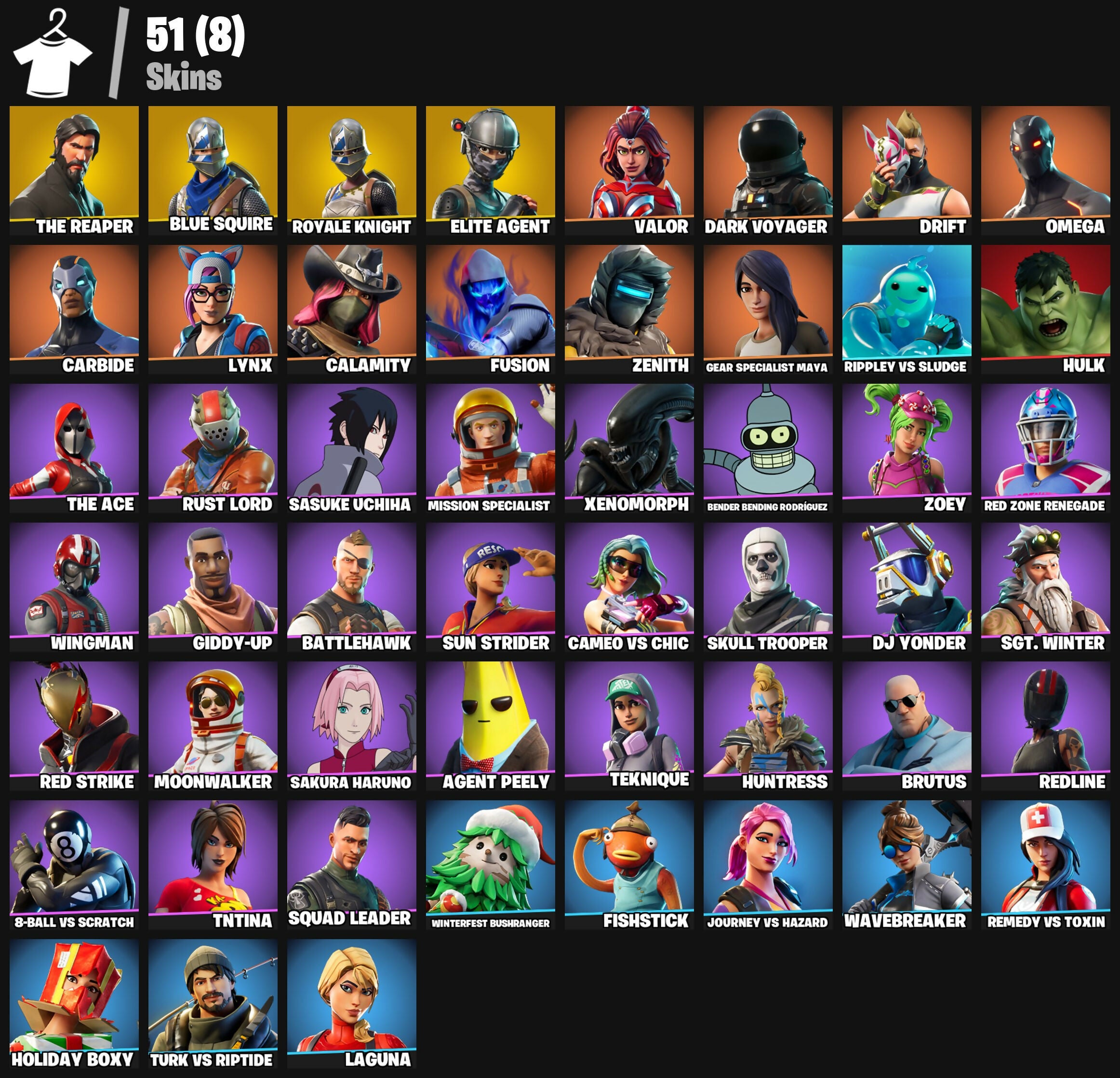 51 skins | The Reaper | Blue Squire | Royale Knight | Elite Agent | Valor | Dark Voyager | Take The L| Omega | 550 VB - [PC/PSN/XBOX]