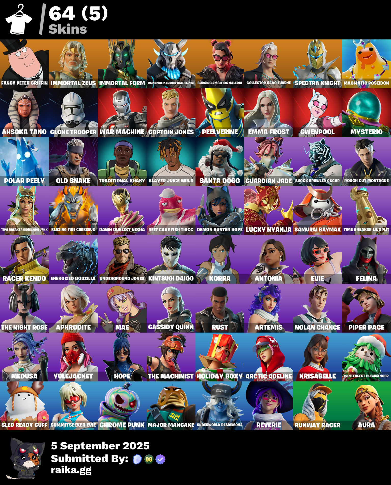 64 TOP SKINS [PC/PSN/XBOX] | FANCY PETER GRIFFIN ✅ IMMORTAL ZEUS ✅ IMMORTAL FORM ✅ HARBINGER ARMOR OMEGAROK ✅ BURNING AMBITION VALERIA