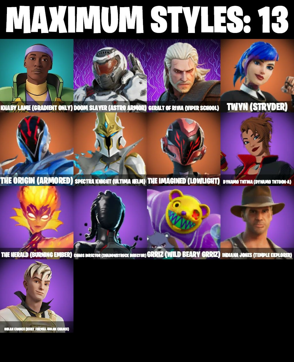 65 SKINS | SPIDER-GWEN | SLAYER JUICE WRLD | SANTA DOGG | KHABY LAME | SPIDER-MAN (NO WAY HOME) | DOCTOR STRANGE | MOON KNIGHT | PROWLER | DARTH VADER | DOOM SLAYER | GERALT OF RIVIA | MALIK | TWYN |
