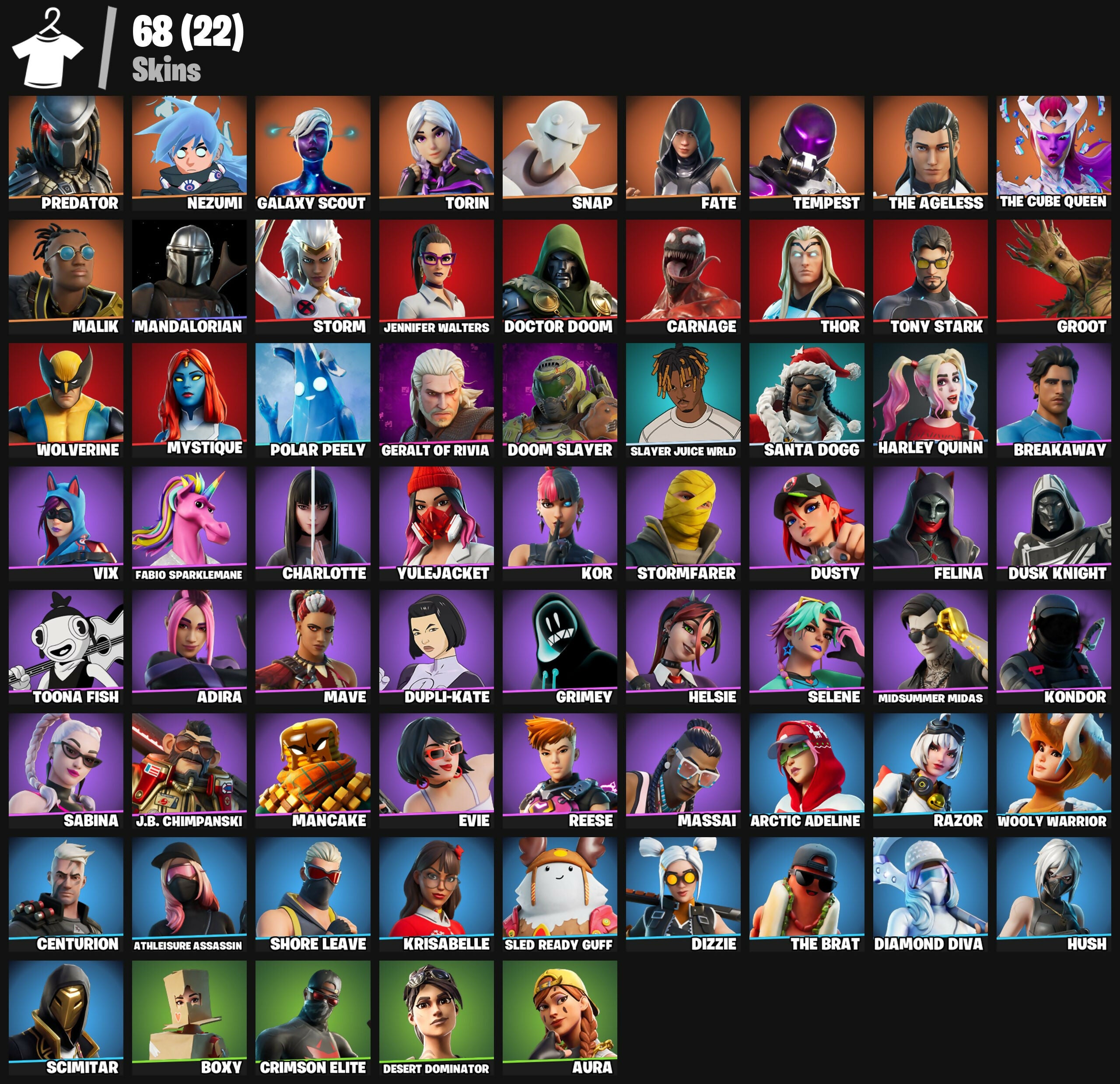 68 skins | Predator | Nezumi | Galaxy Scout | Torin | Snap | Fate | Tempest | The Ageless | The Cube Queen | Malik | 450 VB - [PC/PSN/XBOX]