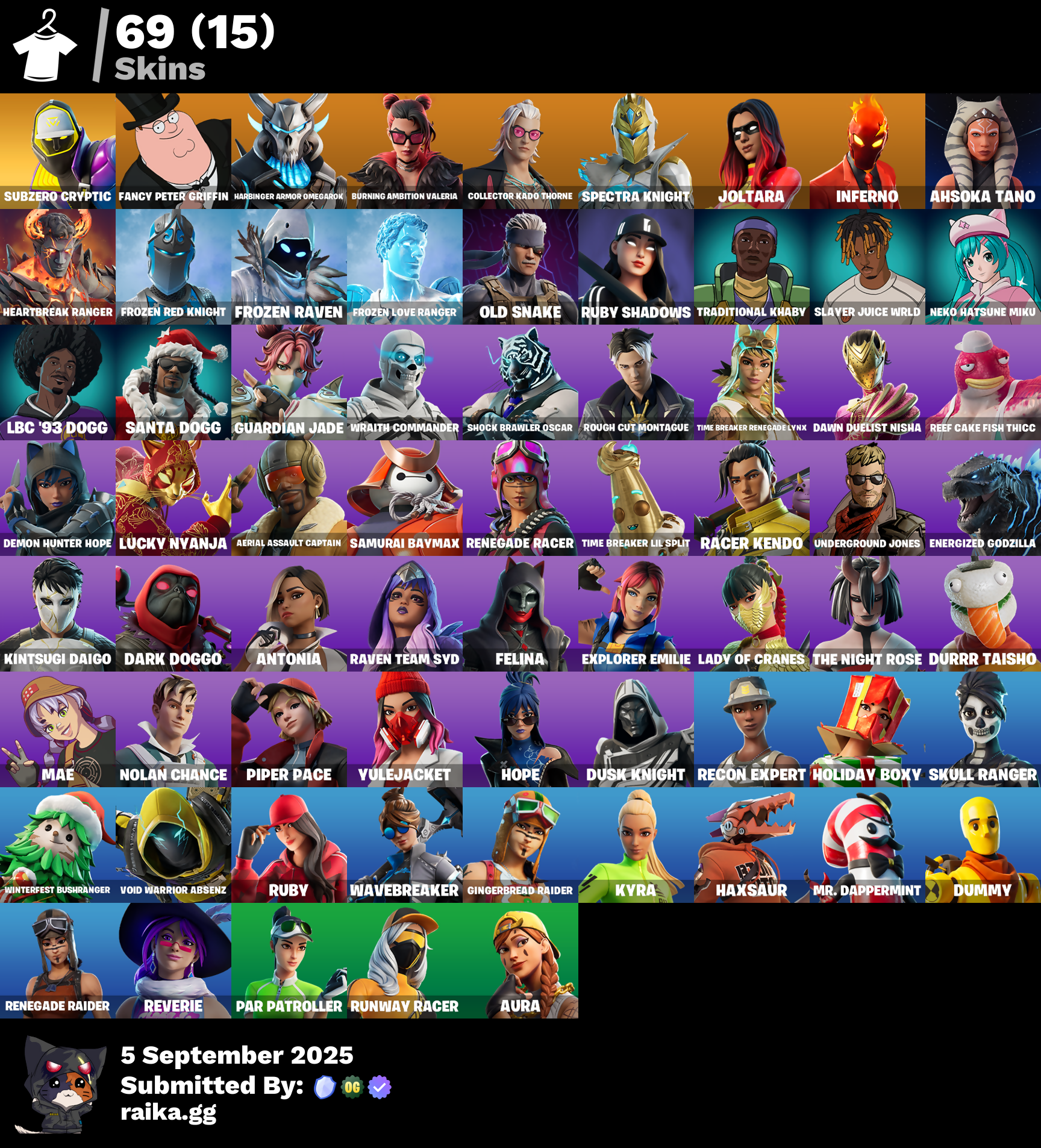 69 TOP SKINS [PC/PSN/XBOX] | RENEGADE RAIDER ✅ SUBZERO CRYPTIC ✅ FANCY PETER GRIFFIN ✅ HARBINGER ARMOR OMEGAROK ✅ BURNING AMBITION VALERIA